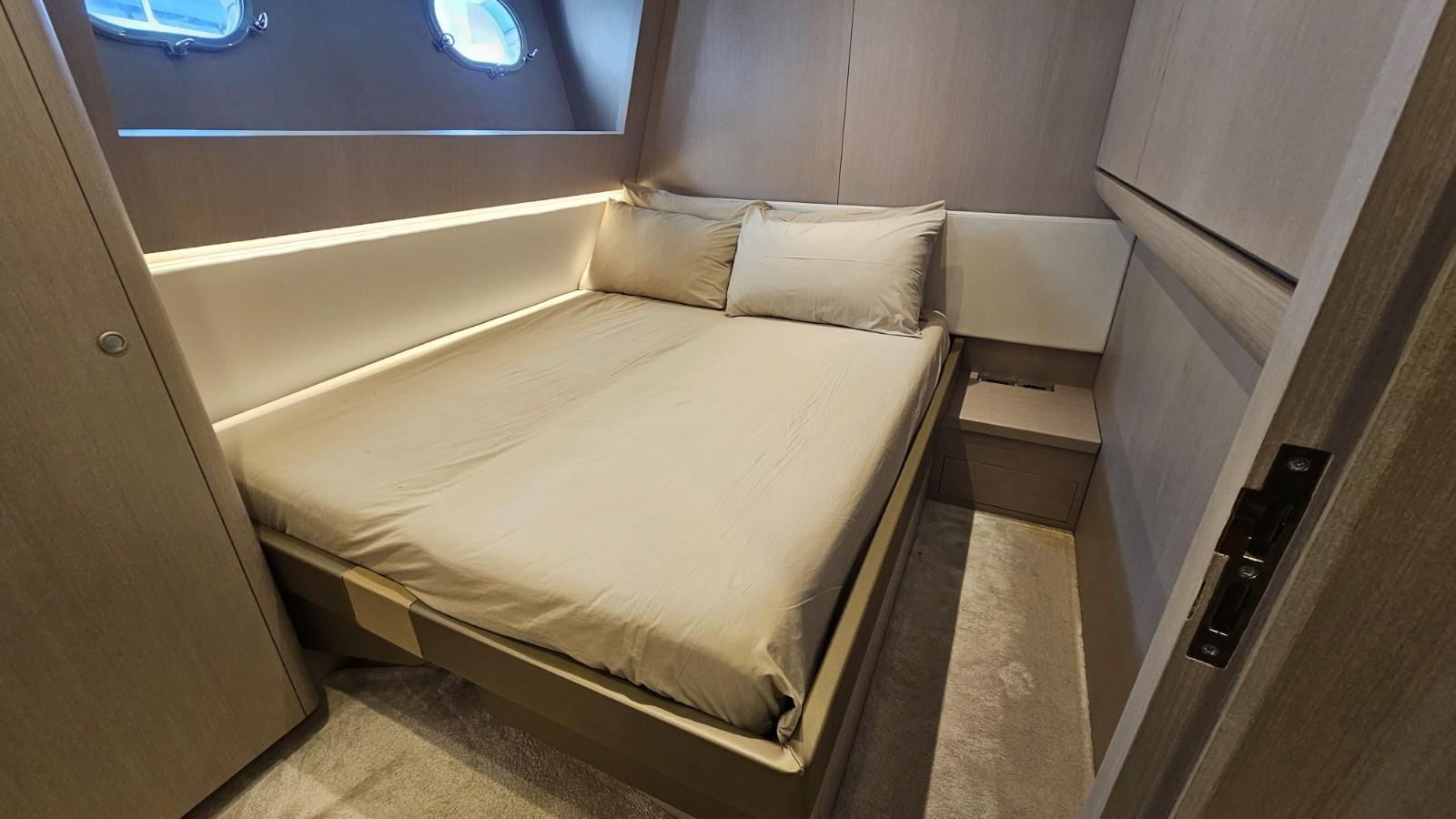 Cabine principale avec lit double et salle de bain - Cabine VIP avec lit double et salle de bain - Cabine d’invités avec deux lits plats transformables en lit double, troisième lit pliant et salle de bain - Cabine d’invités avec deux lits plats transformables en lit double, troisième lit escamotable et salle de bain.