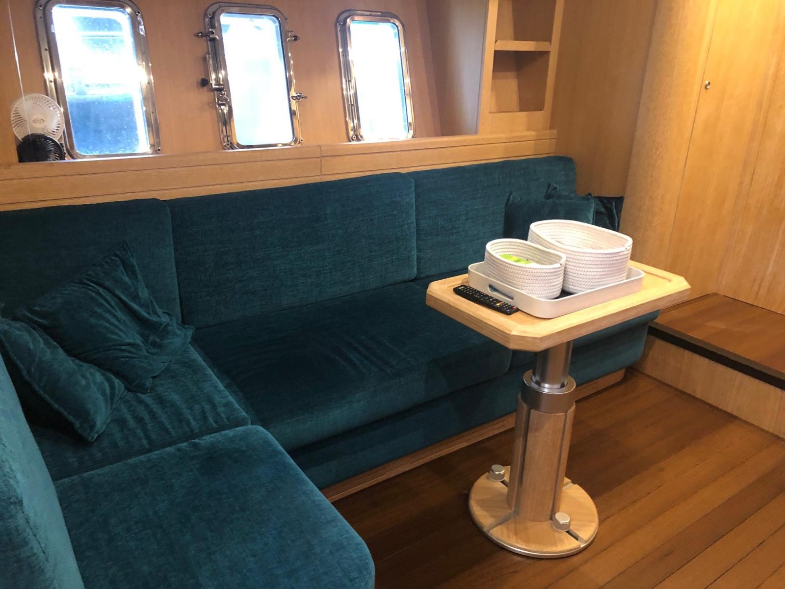 Alarme gaz, Alarme moteur, Alarme de pompe de cale, Eau sous pression, Douche de cockpit, Phare de poursuite, Flaps hydrauliques, Garage à annexe, Hard top, Extincteur(s) fixe(s), Indicateurs de flaps, Lavage de chaine, Lavabo dans le cockpit, Passerelle, Plateforme arrière, Pompe de cale automatique, Pompe de cale manuelle, Onduleur, Guindeau électrique, Echelle de bain, Selles pour Annexe, table de cockpit, Corne, Winch électrique arrière.