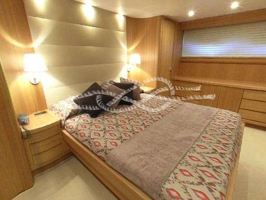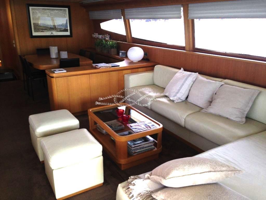 Alarme moteur, Alarme de pompe de cale, Eau sous pression, Système de vidange, Passavant en teck, Douche de cockpit, Double barre à roue, Flaps hydrauliques, Grue de flybridge, Extincteur(s) fixe(s), Indicateurs de flaps, Lavage de chaine, Éclairage de courtoisie, Spots sous-marins, Passerelle, Plateforme arrière (con meccanismo tender lift), Pompe de cale automatique, Porte latérale, Porte latérale, Cockpit en teck, Prise de quai, Connexion eau sous pression à quai, Onduleur, Répétiteur électronique, Rollbar, Guindeau électrique, Echelle de bain, table de cockpit, Corne, Winch électrique arrière.