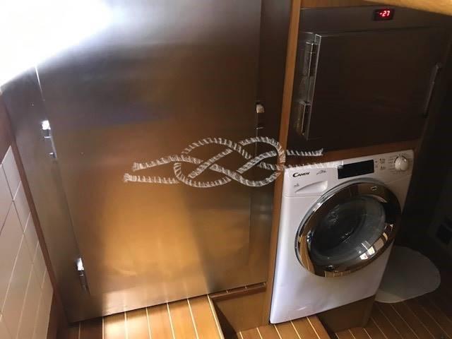 Propulseur d’étrave - propulseur de poupe - passerelle hydraulique - climatisation - dessalinisateur - bossoir d’annexe - antenne TV satellite - réfrigérateurs - congélateur - lave-linge - armoire de grill et réfrigérateur sur le flybridge - annexe avec hors-bord.