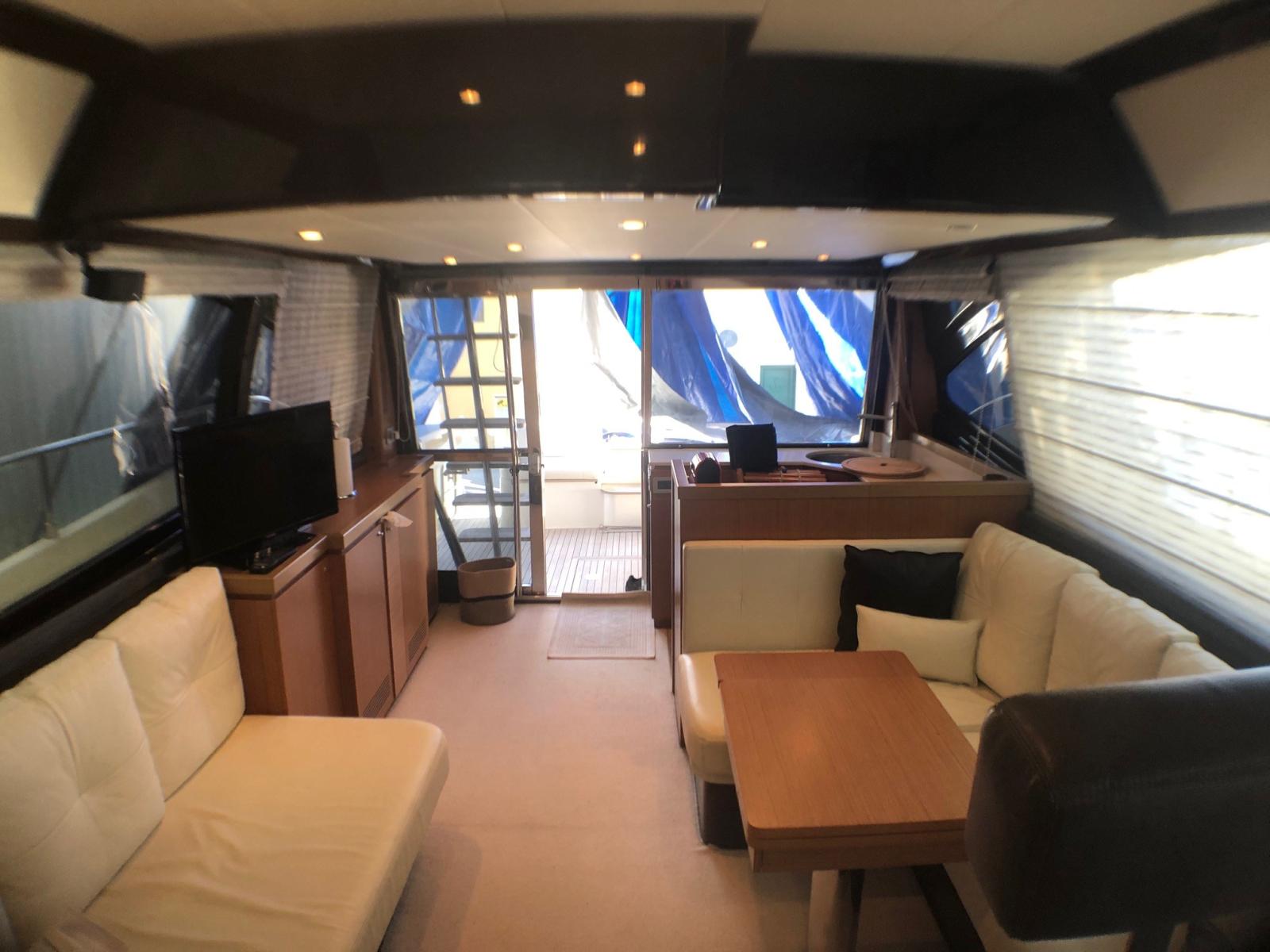 Alarme moteur, Alarme de pompe de cale, Eau sous pression, Douche de cockpit, Double barre à roue, Flaps hydrauliques, Extincteur(s) fixe(s), Indicateurs de flaps, Éclairage de courtoisie, Passerelle, Plateforme arrière, Porte latérale, Cockpit en teck, Prise de quai, Connexion eau sous pression à quai, Rollbar, Guindeau électrique, Echelle de bain, table de cockpit, Corne, Winch électrique arrière.