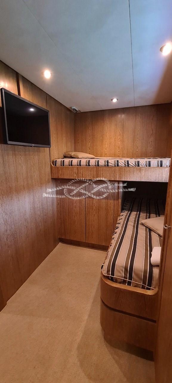 Cabine d’équipage simple à l’avant avec équipements - cabine d’équipage deux lits à l’arrière avec salle de bain.