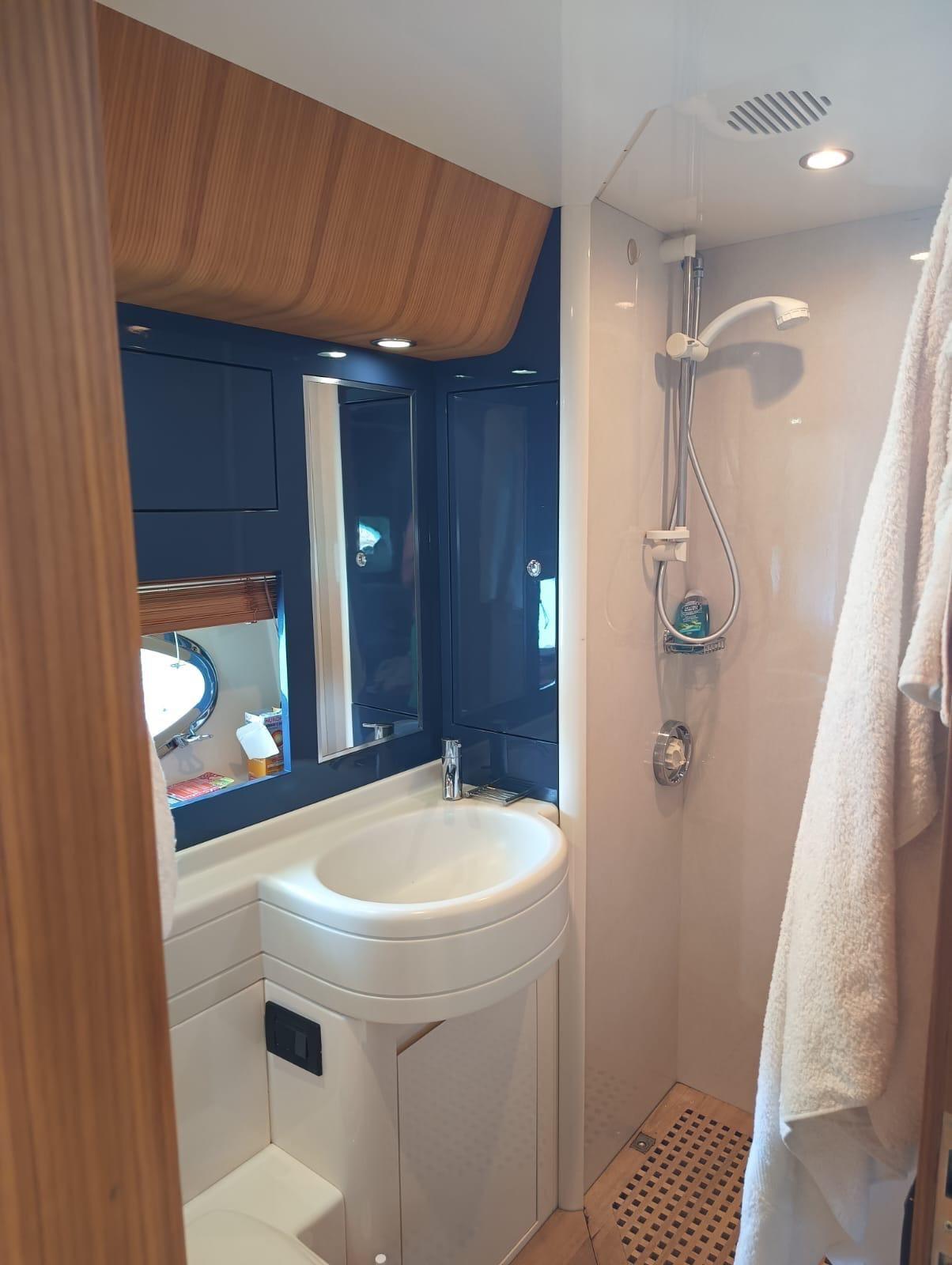 révision de la trappe de la cabine propriétaire - révision du système d’eaux noires - pare-brise en silicone - révision des toilettes de la cabine équipage - révision de la passerelle Besenzoni.