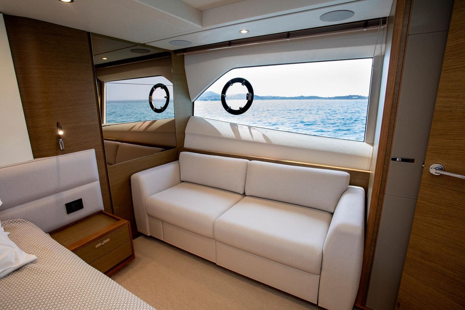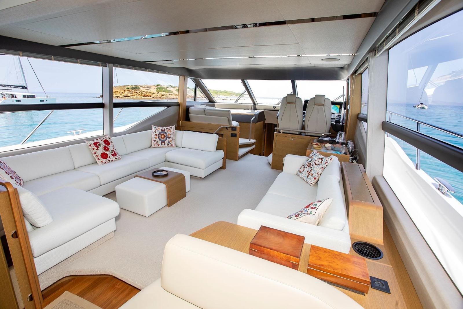 Alarme gaz, Alarme moteur, Alarme de pompe de cale, Eau sous pression, Douche de cockpit, Double barre à roue, Flaps hydrauliques, Indicateurs de flaps, Éclairage de courtoisie, Spots sous-marins, Passerelle (Idraulica), Plateforme arrière (Idraulica), Pompe de cale automatique, Pompe de cale manuelle, Porte latérale, Porte latérale, Cockpit en teck, Prise de quai, Connexion eau sous pression à quai, Onduleur, Guindeau électrique, Echelle de bain, Stabilisateurs (Sleipner Fin stabilizerVF800), table de cockpit, Winch électrique arrière.