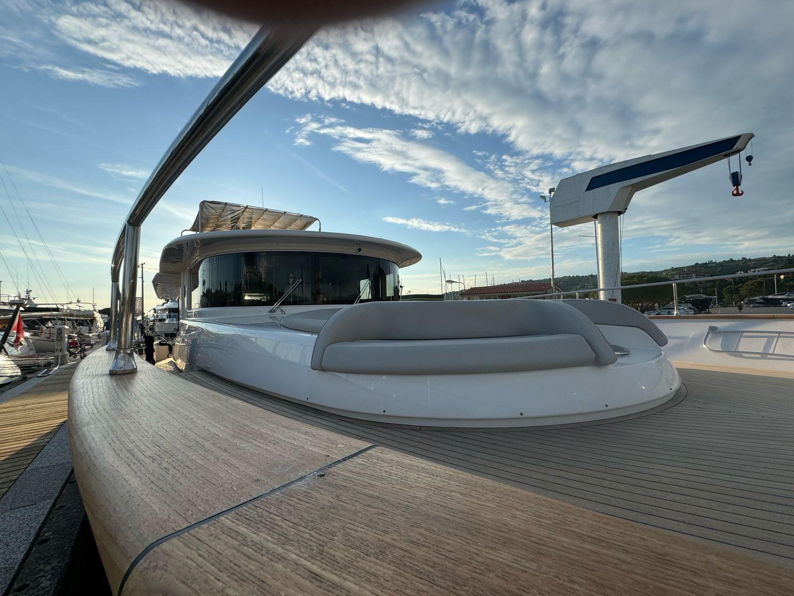Ailerons stabilisateurs CMC Marine zerospeed - troisième poste de contrôle à l’arrière - joystick de manœuvre avec interface GPS - Propulseur d’étrave Vetus - Climatisation Condaria - Groupes électrogènes Kohler 2 x 17 kW (230 et 770 heures moteur) - Dessalinisateur Idromar - annexe avec hors-bord Suzuki 15 cv 4t - Antenne SAT - réfrigérateur / congélateur - frigo sur flying bridge - lave-vaisselle - Four Bosch - Plaque électrique Bosch 4 feux - machine à laver - TV LCD dans le carré escamotable - TV dans la cabine propriétaire, VIP et invités - Bose Hi-Fi - T-Top sur le pont volant avec auvent à ouverture manuelle - bossoir pour annexe sur le pont volant - lumières immergées à l’arrière et sur les côtés.