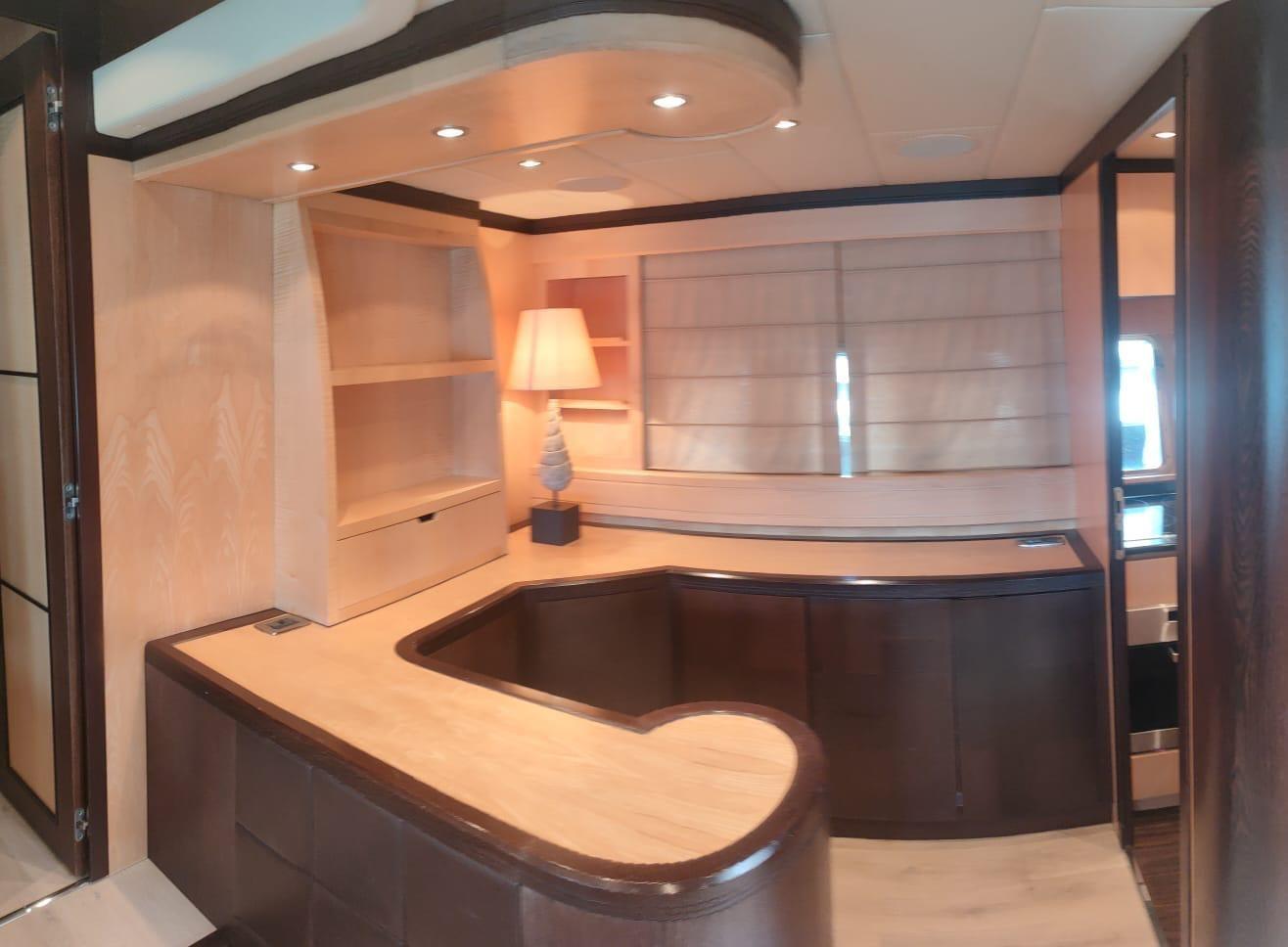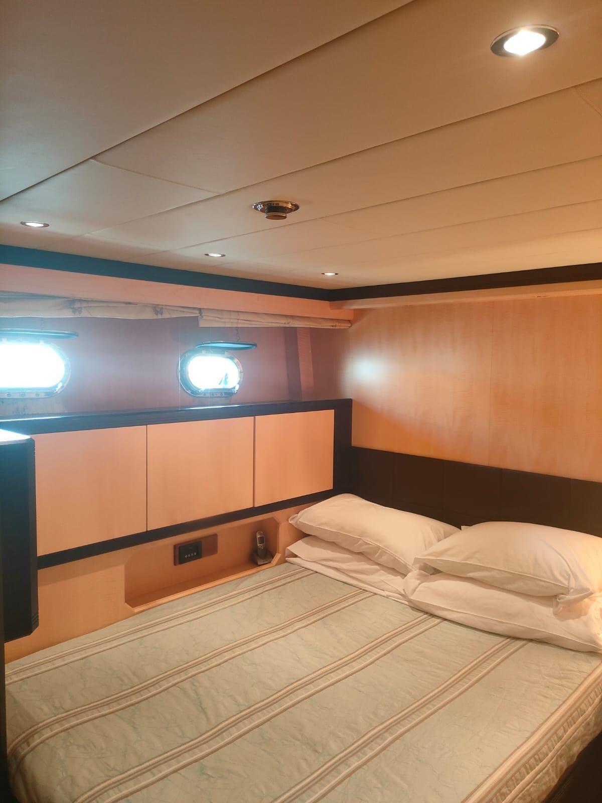 Climatisation réversible cycle chaud/froid - passerelle électro-hydraulique - propulseur d’étrave - garage arrière - réfrigérateurs - congélateur - machine à glaçons - dessalinisateur - TV - antenne TV satellite - chaîne stéréo - annexe.