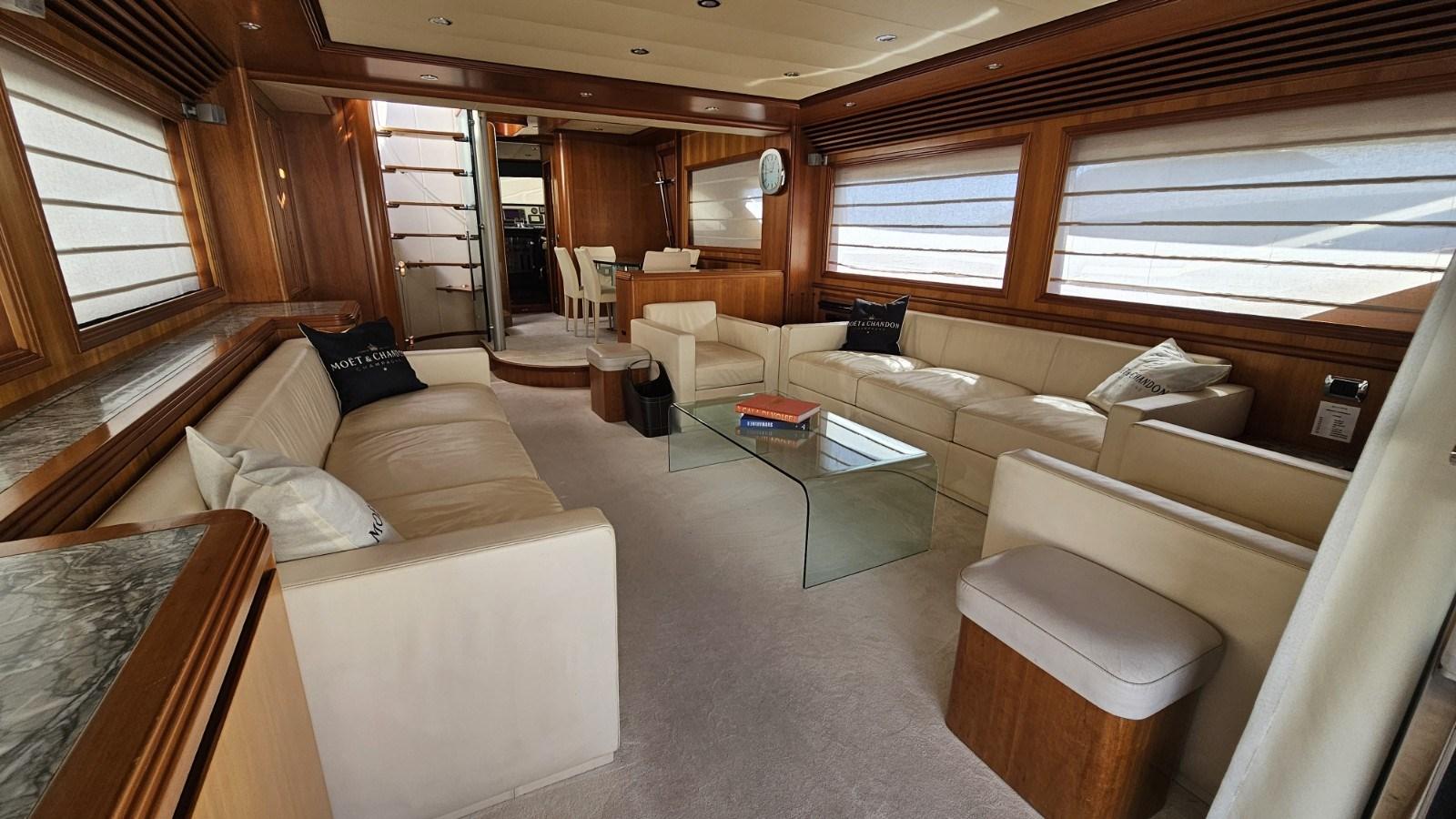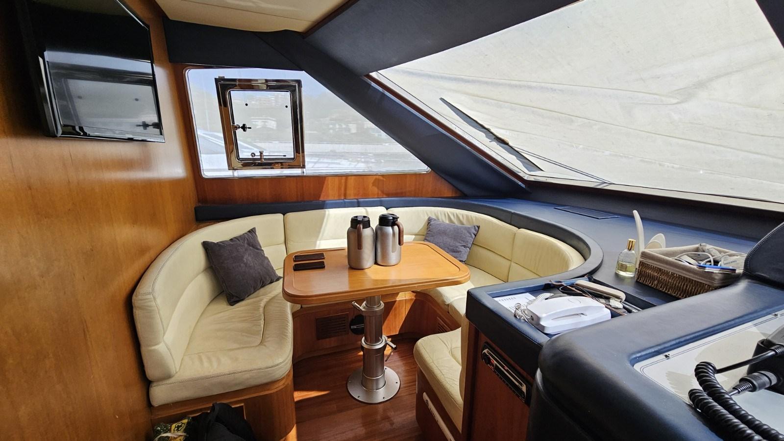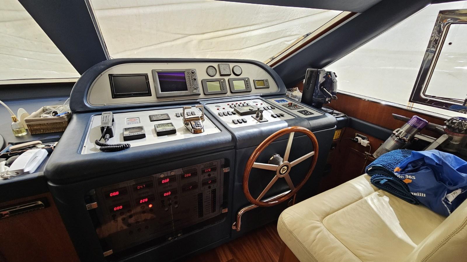 Alarme moteur, Alarme de pompe de cale, Eau sous pression, Système de vidange, Passavant en teck, Douche de cockpit, Double barre à roue, Phare de poursuite, Flaps hydrauliques, Grue de flybridge, Extincteur(s) fixe(s), Indicateurs de flaps, Lavage de chaine, Éclairage de courtoisie, Spots sous-marins, Passerelle, Plateforme arrière, Porte latérale, Porte latérale, Cockpit en teck, Prise de quai, Connexion eau sous pression à quai, Répétiteur électronique, Rollbar, Guindeau électrique, Echelle de bain, Selles pour Annexe, table de cockpit, Annexe, Filières avec sortie latèrale, Corne, Winch électrique arrière.