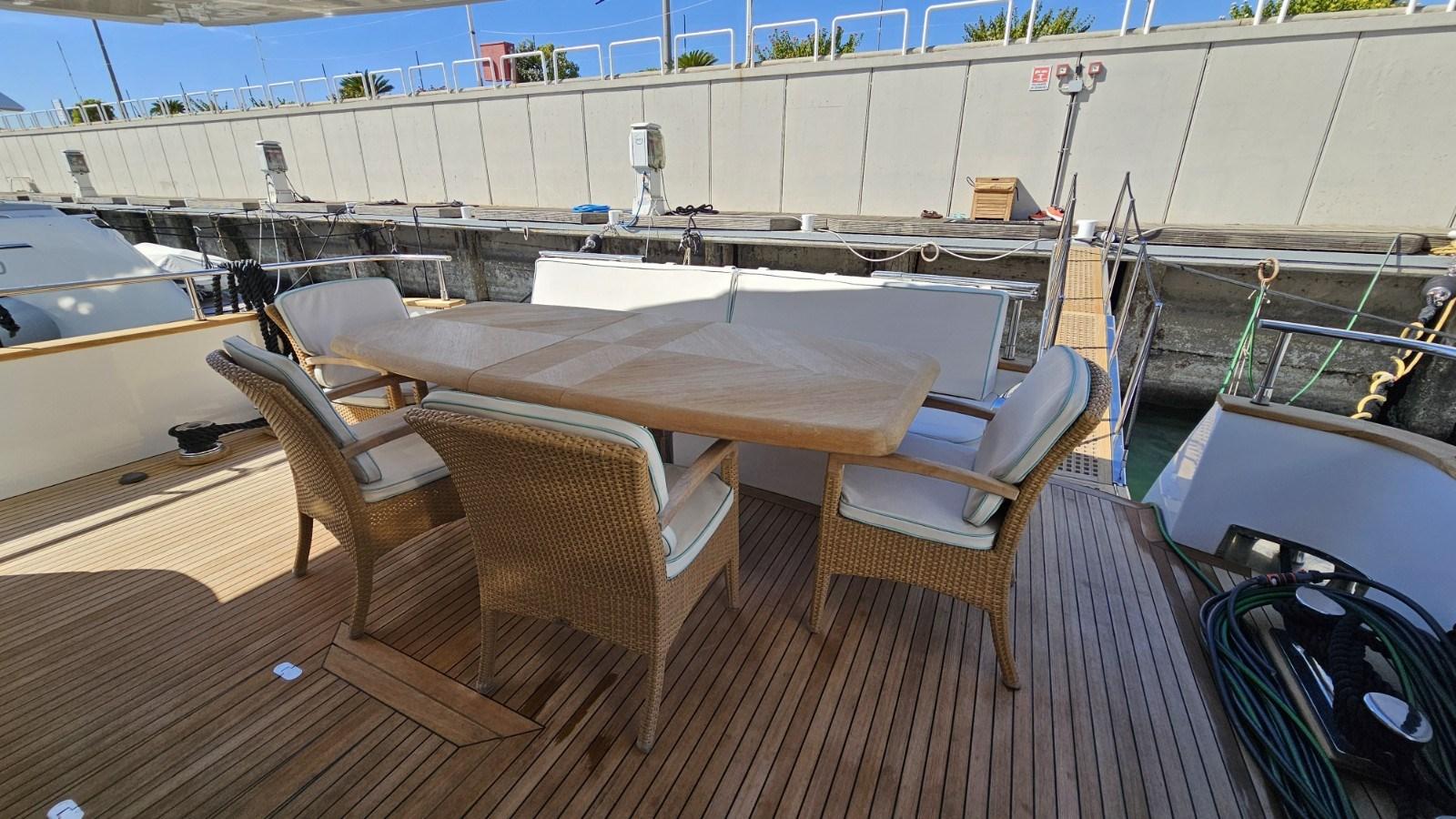 remplacement complet de la climatisation Dometic - remplacement des deux générateurs par des Kohler neufs de 20,5 kW - démontage pour révision de toutes les pompes de bord, certaines remplacées neuves - révision des amarres arrière - remplacement de tous les appareils de bord (réfrigérateur, congélateur, plaque de cuisson, etc.) - révision du treuil d’étrave - nouveau dessalinisateur - service extraordinaire des moteurs CAT de l’atelier officiel.
