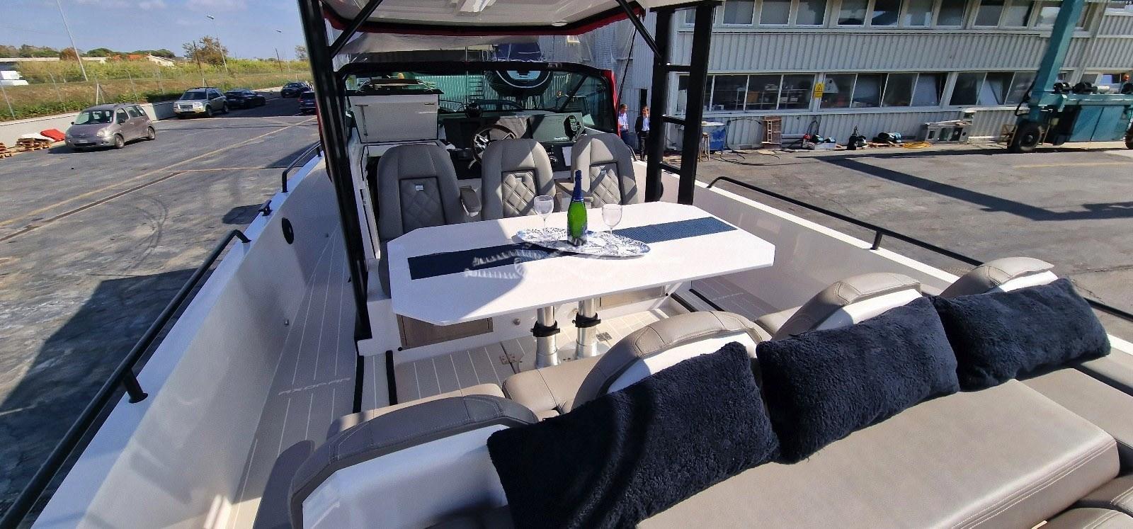 T-top - Propulseur d’étrave latéral avec batterie dédiée - treuil électrique - autoclave - Ancre Ultra Marine 12 kg d’ancre en acier et chaîne galvanisée 50 mètres - Système stéréo à fusion (commande de la passerelle et de la cabine) - USB et prises 220V (étanches internes et externes) - toilettes électriques (sous le banc) - réservoir d’eau noire avec macatérateur - 2 réfrigérateurs à tiroir Dometic - Chargeur de batterie 30A, trois prises avec distributeur de charge - prise à terre 220V - douche extérieure - Lavabo (interne) - Pont Estech - couvre-salle de salle complète avec porte - auvent avant et arrière - coussins de bronzage avant et poupe - échelle de bain double, dont un Nautinox avec tiges de levage - porte-bagages T-top - porte-canne - casier igloo isolé avec décharge d’eau vers la mer - coussins Silvertext complets - dinette extérieure convertible avec pistons à gaz pour la table - lumières T-top gradables sous - housses de coussins.