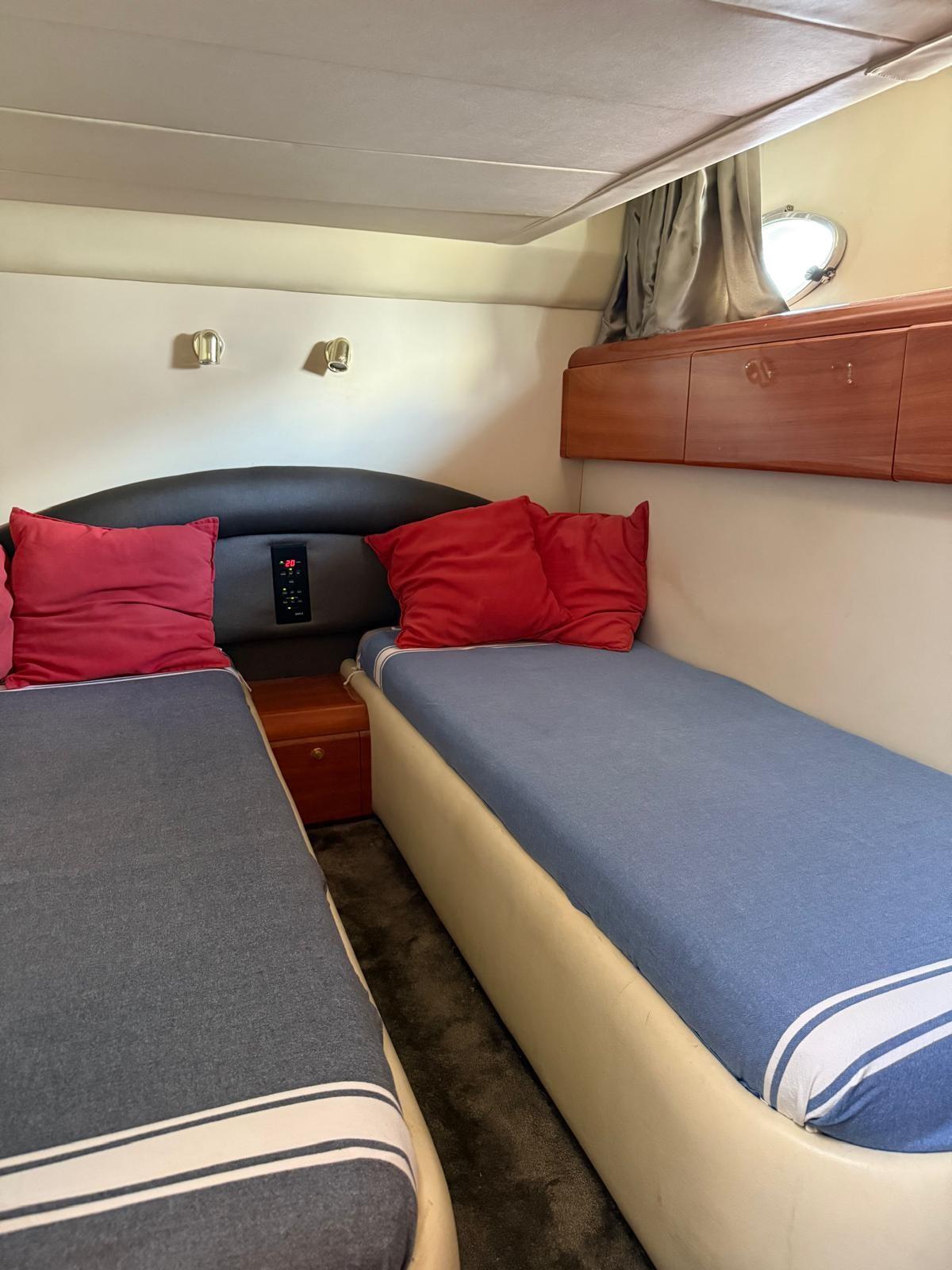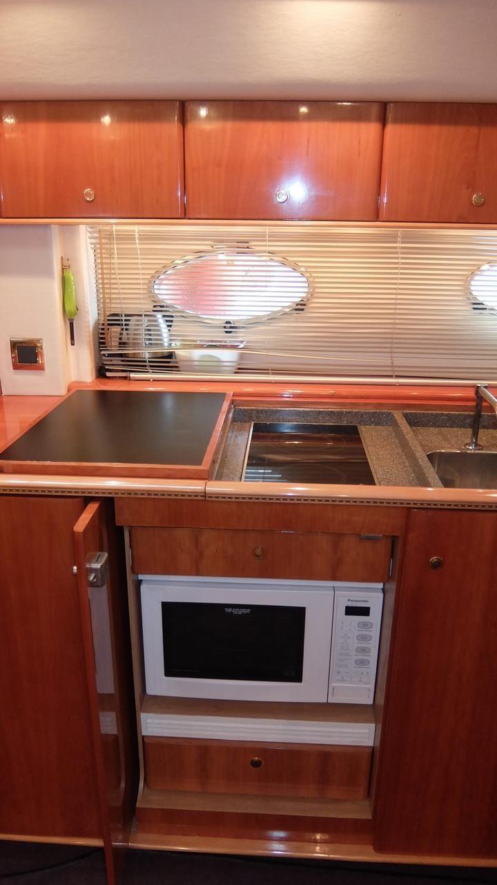 Propulseur d’étrave électrique - climatisation chaude/froide - groupe électrogène Onan de 12 kW - garage à tender - camion Williams 280 à jet d’eau - échelle de bain double - Passerelle électro-hydraulique Opacmare - éclairage sous-marin - micro-ondes - placard électrique à 2 brûleurs - réfrigérateur/congélateur - meuble bar cockpit avec évier, barbecue et réfrigérateur - antenne TV TV - TV LCD - passerelle arrière surdimensionnée en tant que V55.