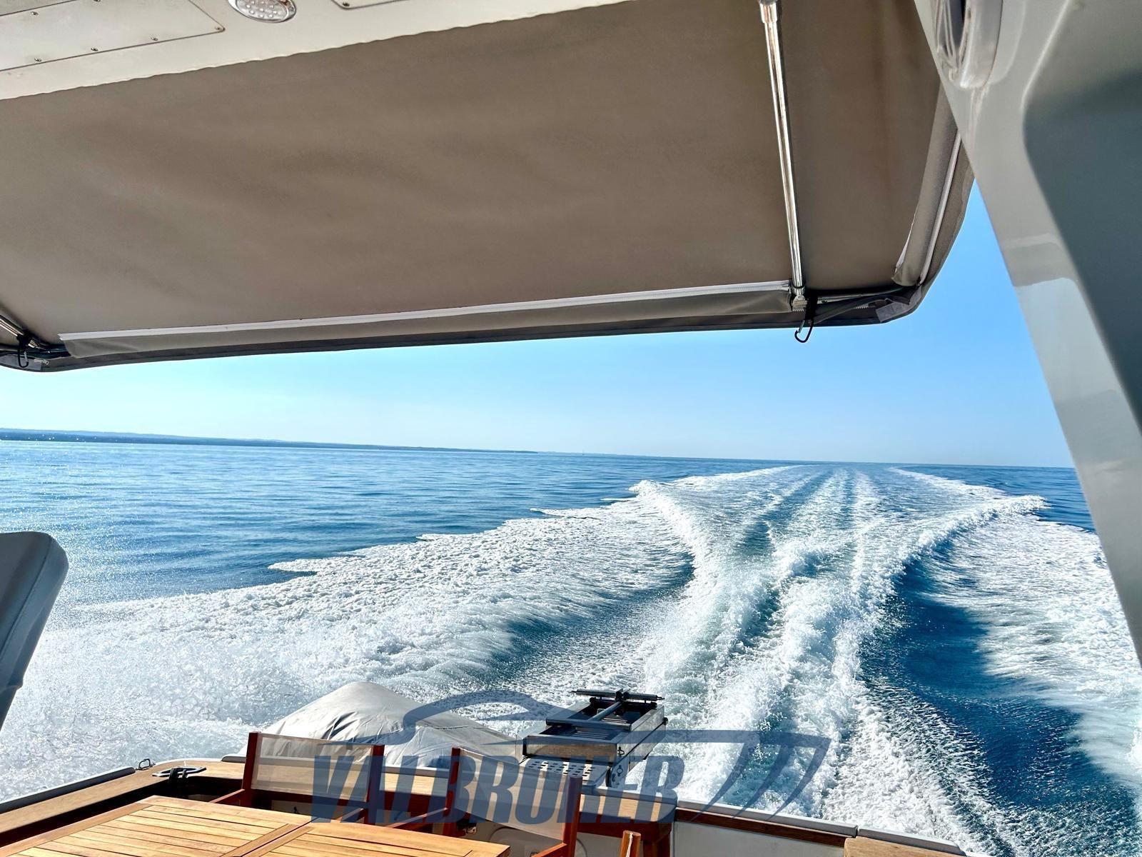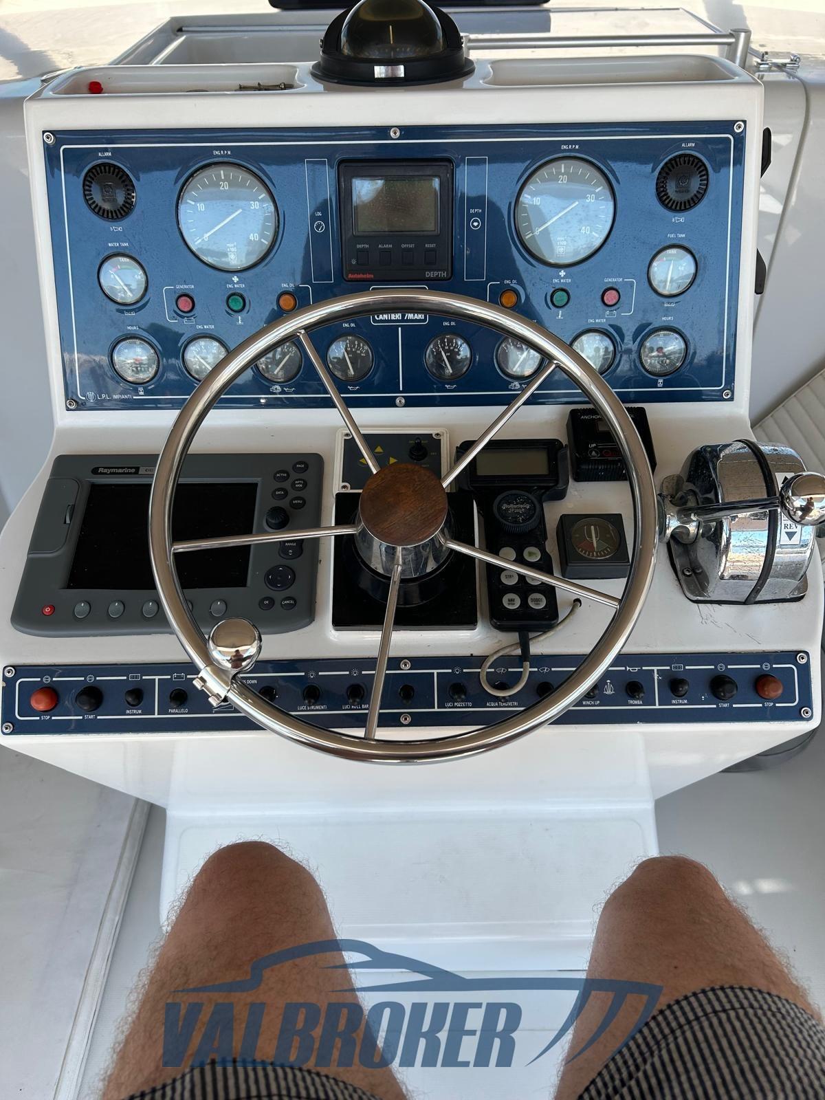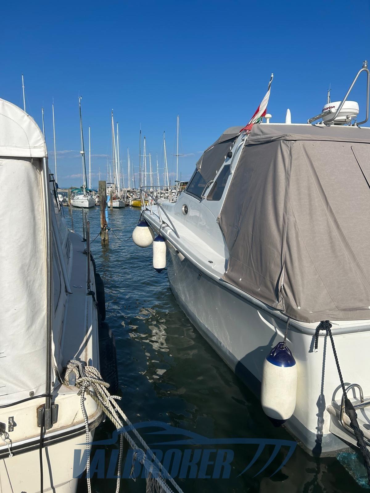 Chantier naval italien historique sur l’Adriatique. Qualité et finitions italiennes, coque et navigabilité comme un pêcheur américain. En parfait état, entièrement réaménagé sur le lac de Garde : coque, moteurs, intérieur. Possibilité d’en faire un bateau (pas plaqué). 2 moteurs diesel turbo Caterpillar de 350 ch sur la ligne d’arbre. Sous le pont, on trouve : une cabine principale à l’avant, des toilettes avec douche et modet, une cabine à manger convertible, une cabine simple à l’arrière. Actuellement visible dans la région de Trieste.