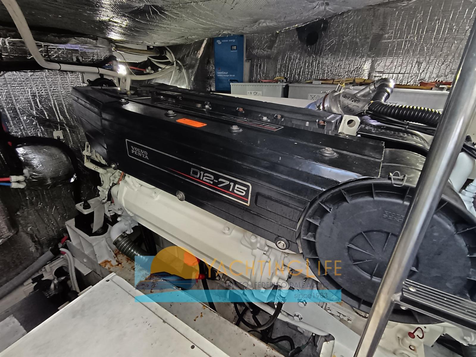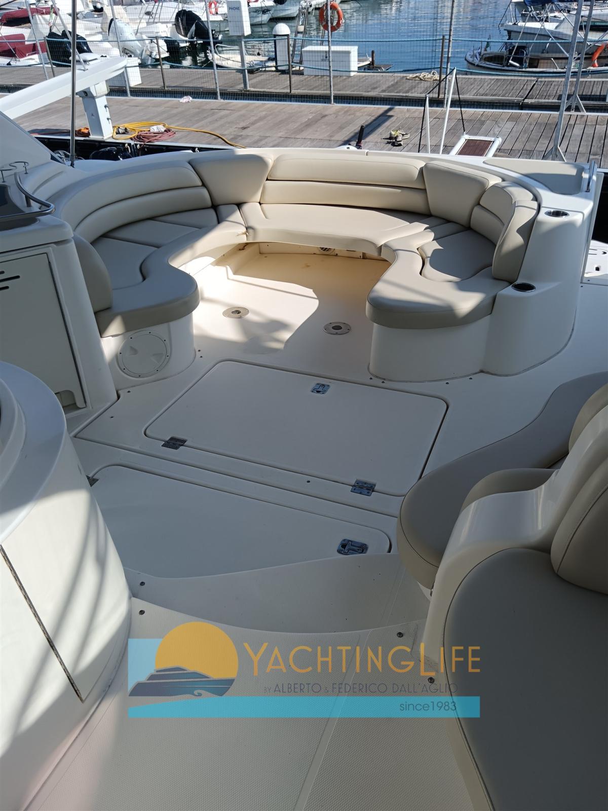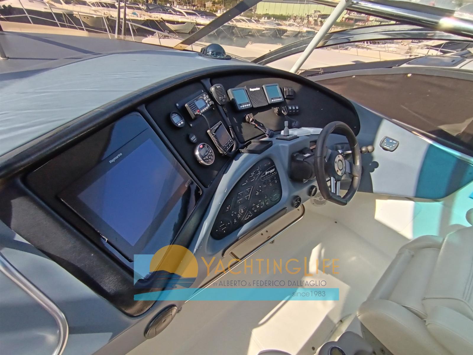 Alarme moteur, Alarme de pompe de cale, Eau sous pression, Douche de cockpit, Flaps hydrauliques, Hard top, Indicateurs de flaps, Lavabo dans le cockpit, Éclairage de courtoisie, Passerelle (idraulica), Plateforme arrière (idraulica tender lift), Pompe de cale automatique, Prise de quai, Guindeau électrique, Echelle de bain, Selles pour Annexe, table de cockpit, Annexe (e motore), Corne.