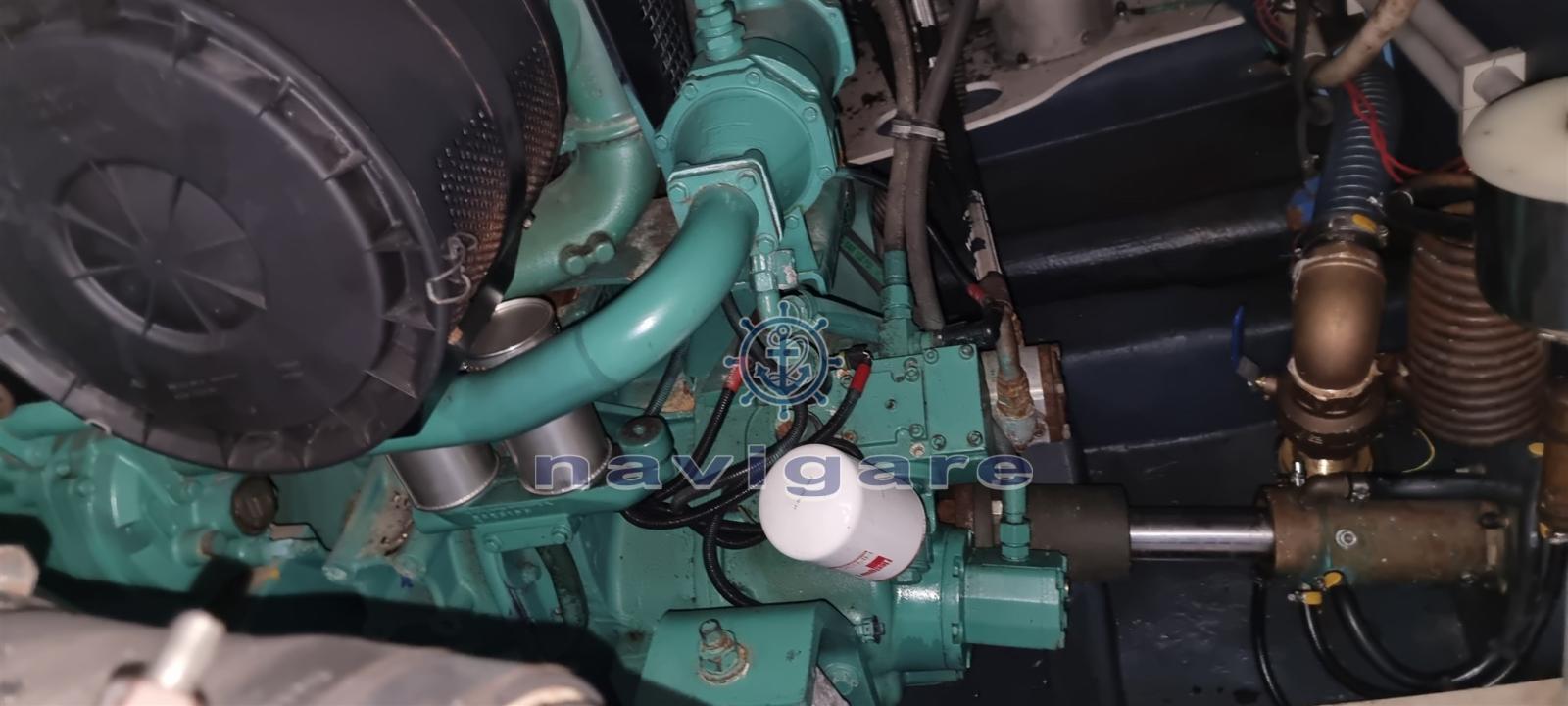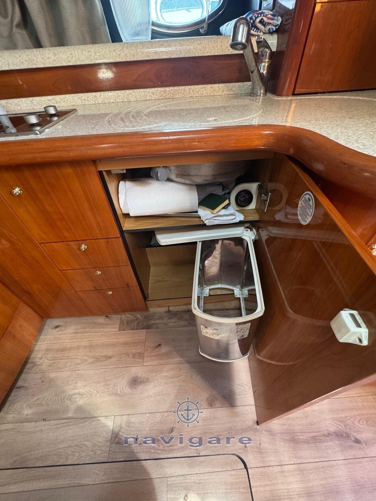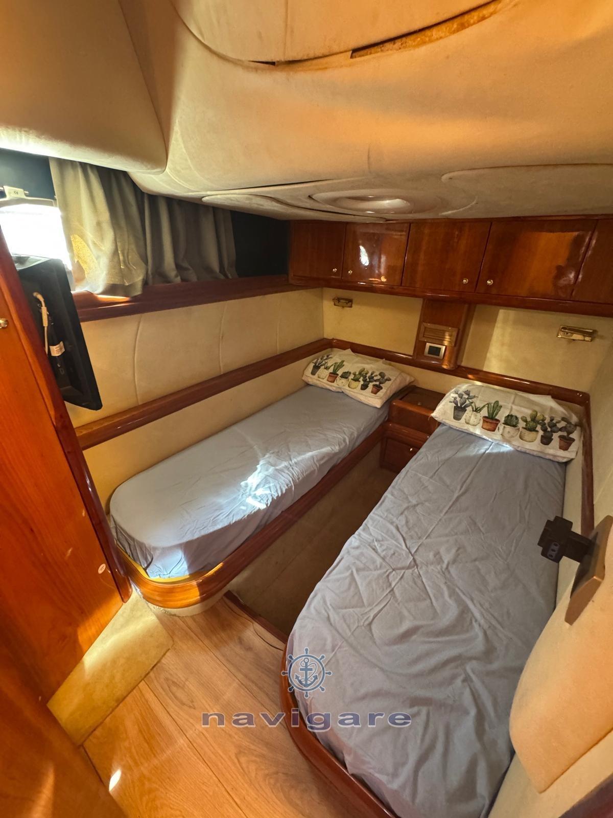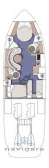 Bateau caractérisé par des lignes séduisantes et une grande habitabilité des intérieurs et des extérieurs. Grand bain de soleil arrière avec garage pour une annexe de 3,15 mètres, grande dînette en forme de U et double poste de pilotage avec une excellente visibilité.