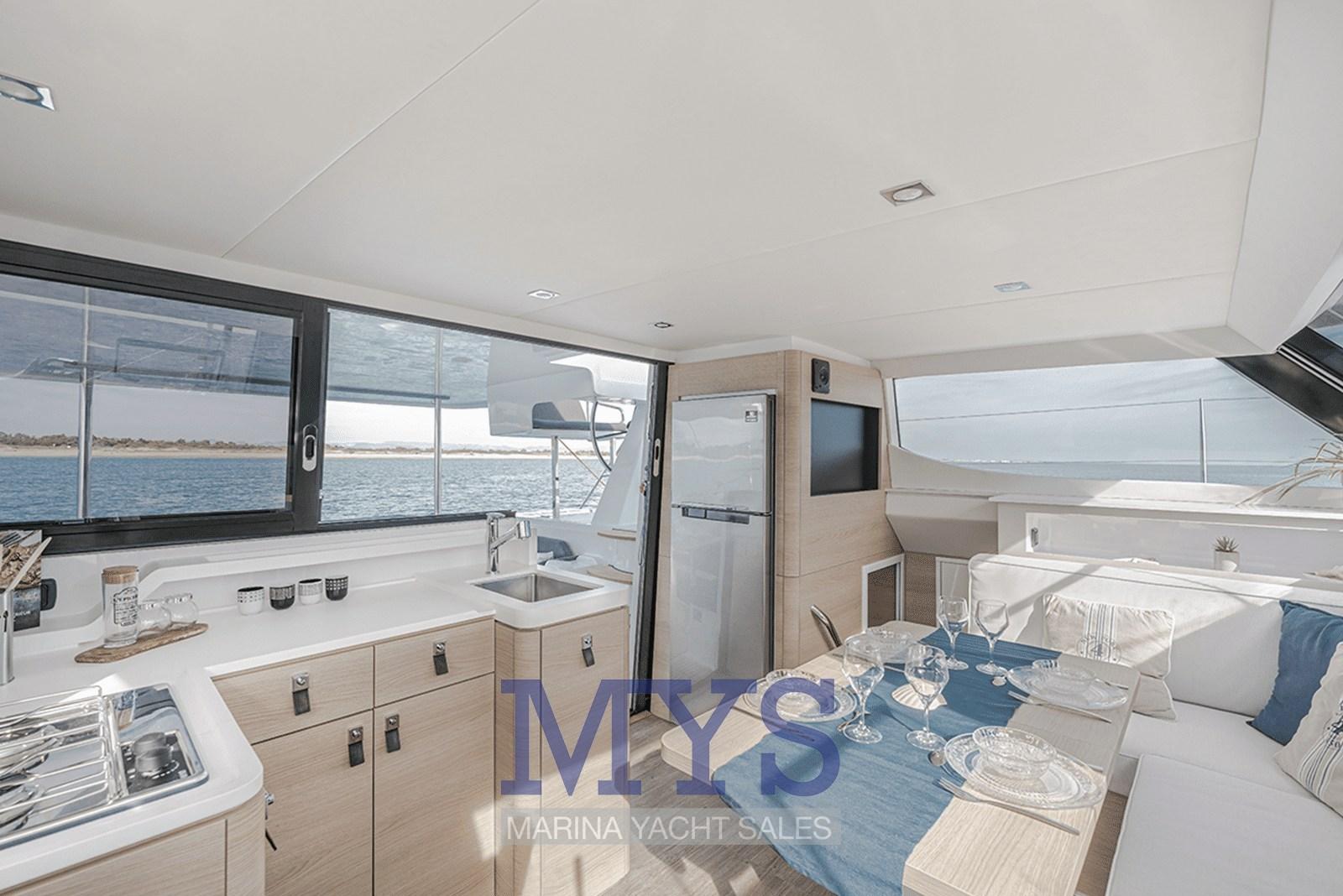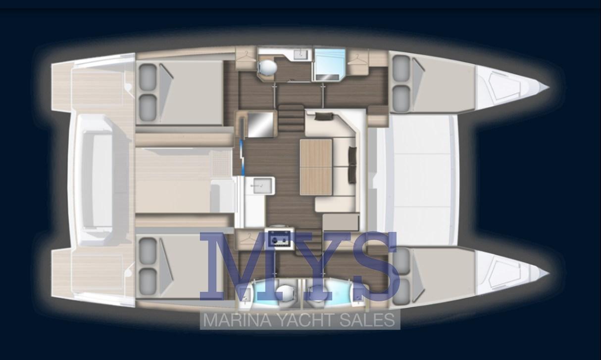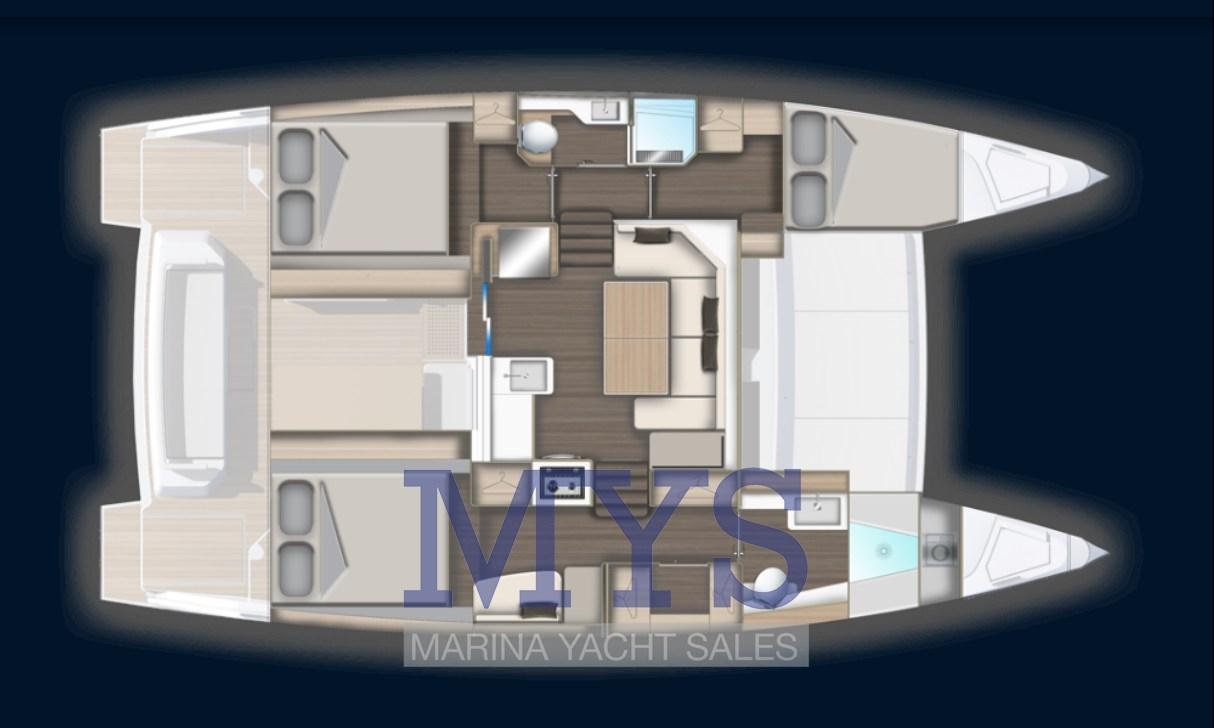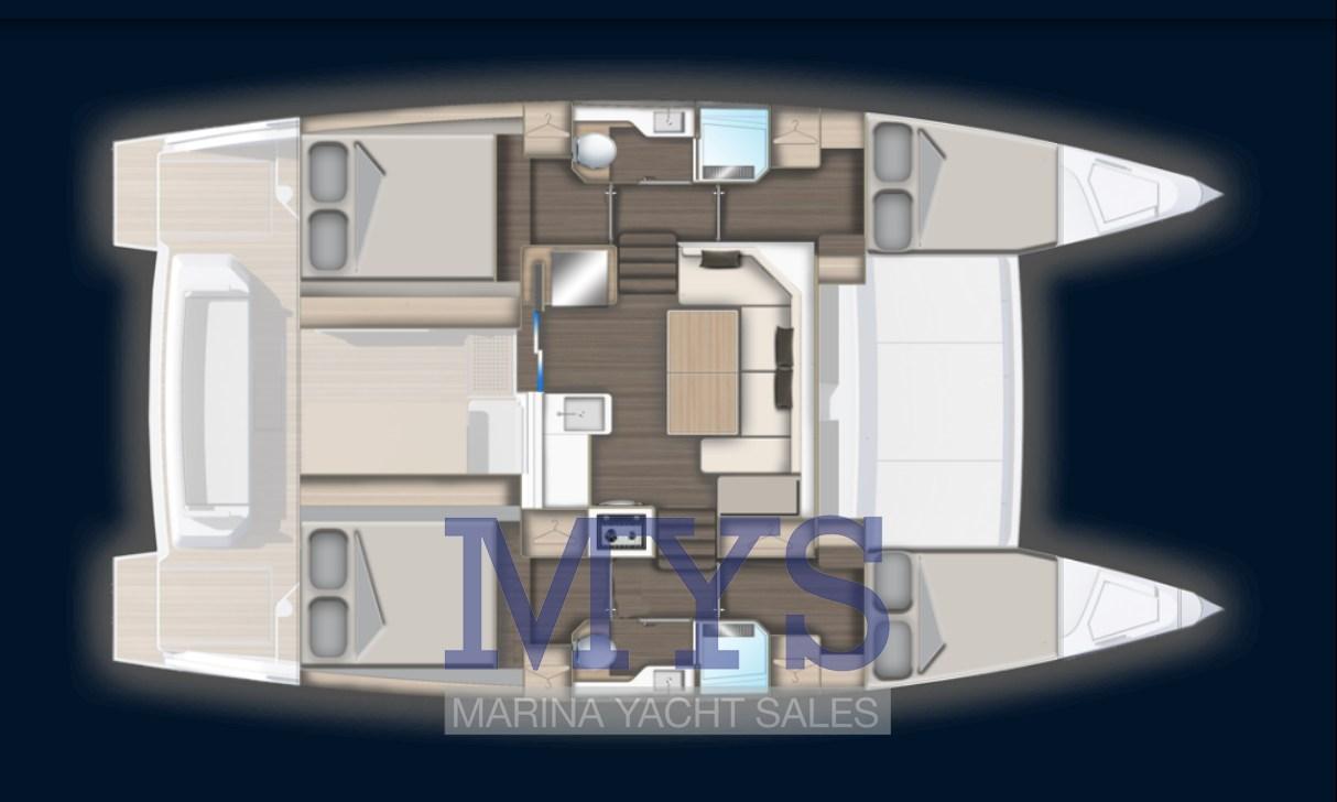 Un catamaran qui frappe au premier abord par son design moderne et élégant, mais qui triomphe vraiment quand on le découvre : des espaces incroyablement généreux, une qualité de construction perceptible dans chaque détail et une sensation de solidité et de confort rarement trouvée dans cette dimension.
