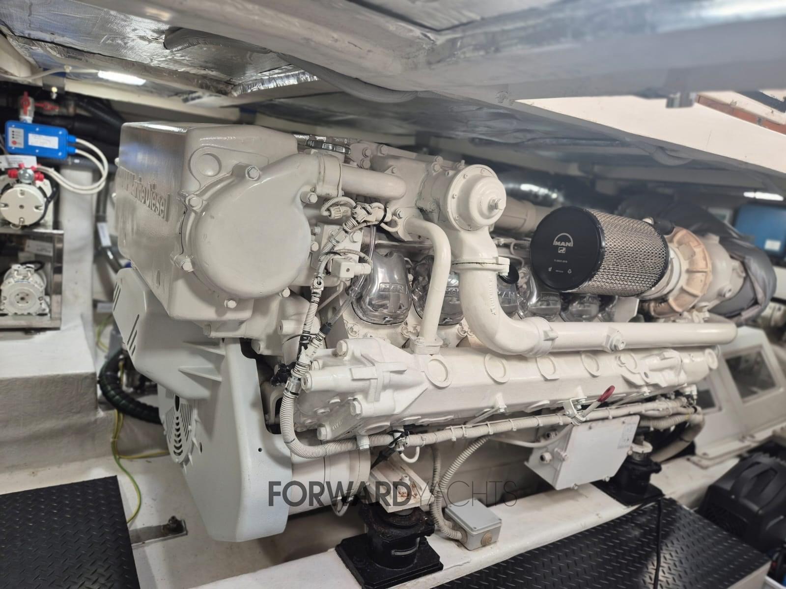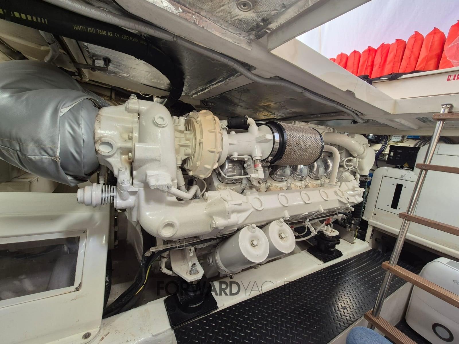 Comparé au modèle standard, ce Ferretti 620 est équipé de : un générateur double kholer et un moteur MAN surdimensionné de 1240 ch (au lieu de 1050 ch).