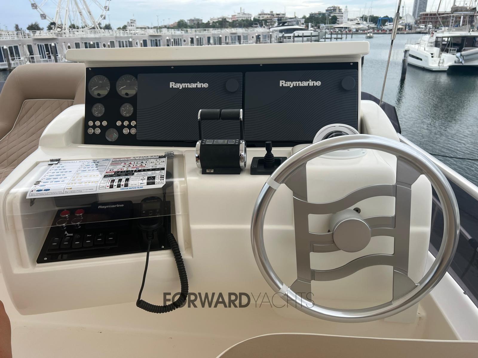 Un modèle très réussi, un intérieur très confortable et élégant. En 2025, de nombreuses améliorations ont été apportées, notamment : la coque mise à zéro, le ponçage et le polissage de la coque et de la superstructure, ainsi que l’instrumentation complète Raymarine.