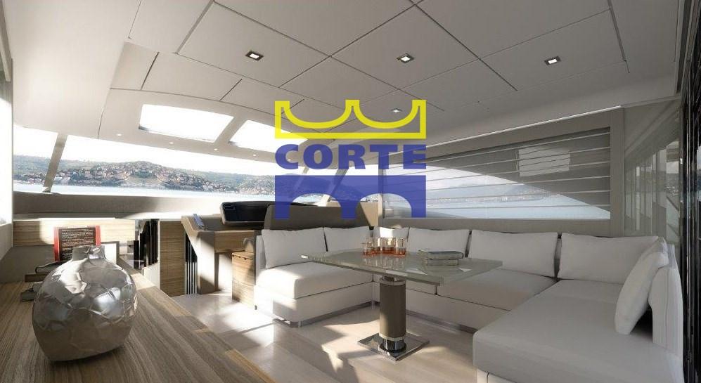 Bimini (pozzetto con candelieri), Coussins arrieres, Coussin avant, Sellerie de fly, sellerie de cockpit, Taud de soleil.