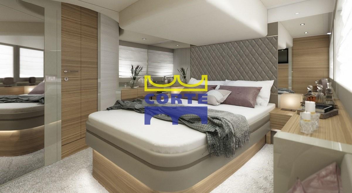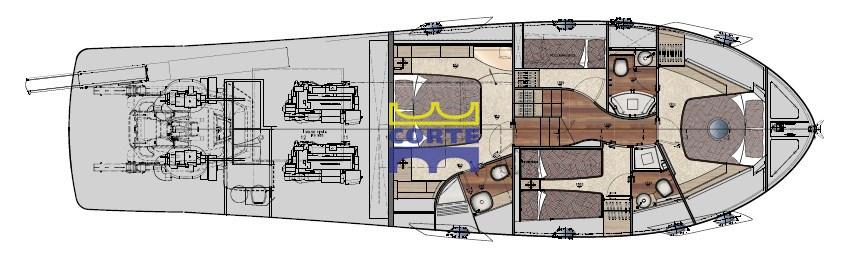 Alarme gaz, Alarme moteur, Alarme de pompe de cale, Ancre (Bruce 40 kg in acciaio inox con 100 n di catena), Ligne d'arbre de rechange, Eau sous pression, Douche de cockpit (con miscelatore c/f), Propulseur d'étrave (Vetus), Phare de poursuite, Garage à annexe, Extincteur(s) fixe(s), Lavabo dans le cockpit, Éclairage de courtoisie, Passerelle (idraulica a scomparsa Besenzoni), Plateforme arrière (da bagno idraulica rivestita in teak), Pompe de cale automatique, Porte latérale (salone in acciaio con cristallo), Cockpit en teck, Prise de quai, Connexion eau sous pression à quai, Guindeau électrique, Echelle de bain (manuale), Stabilisateurs (Seakeeper), table de cockpit, Corne, 2 Winch électrique arrière, Winch électrique avant.