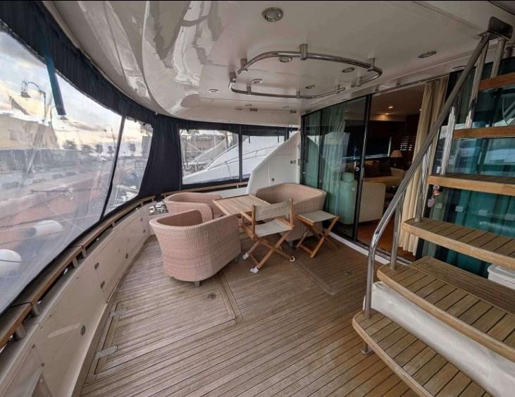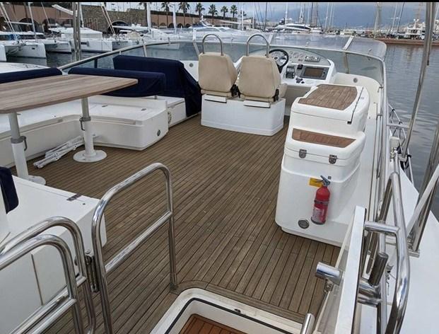 PONT MOUCHER EN TECK. HANGAR ARRIÈRE POUR CANOT DÉRIVEUR. PARQUET EN TECK. SIÈGES BESENZONI RÉGLAGE ÉLECTRIQUE.