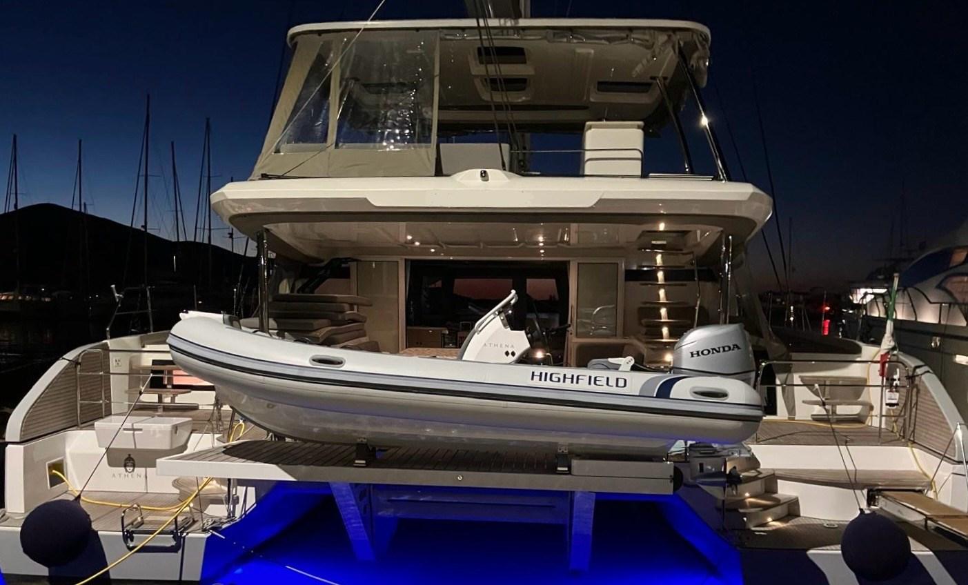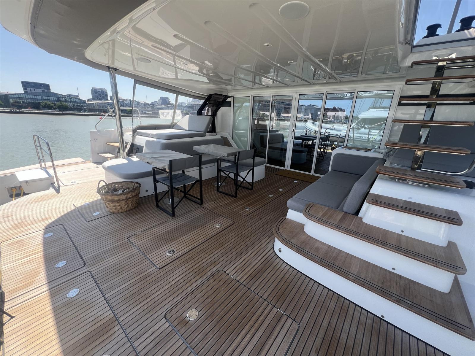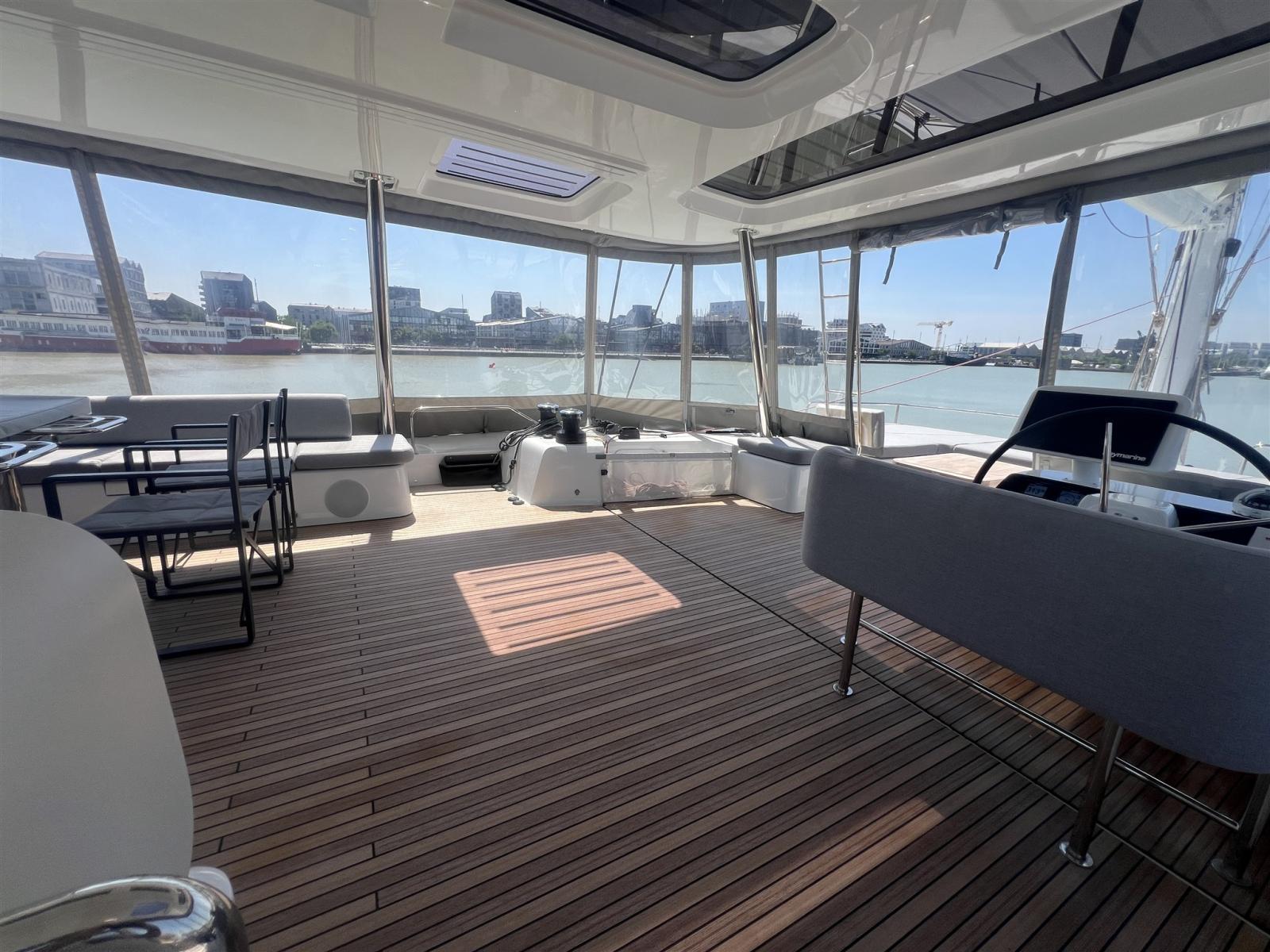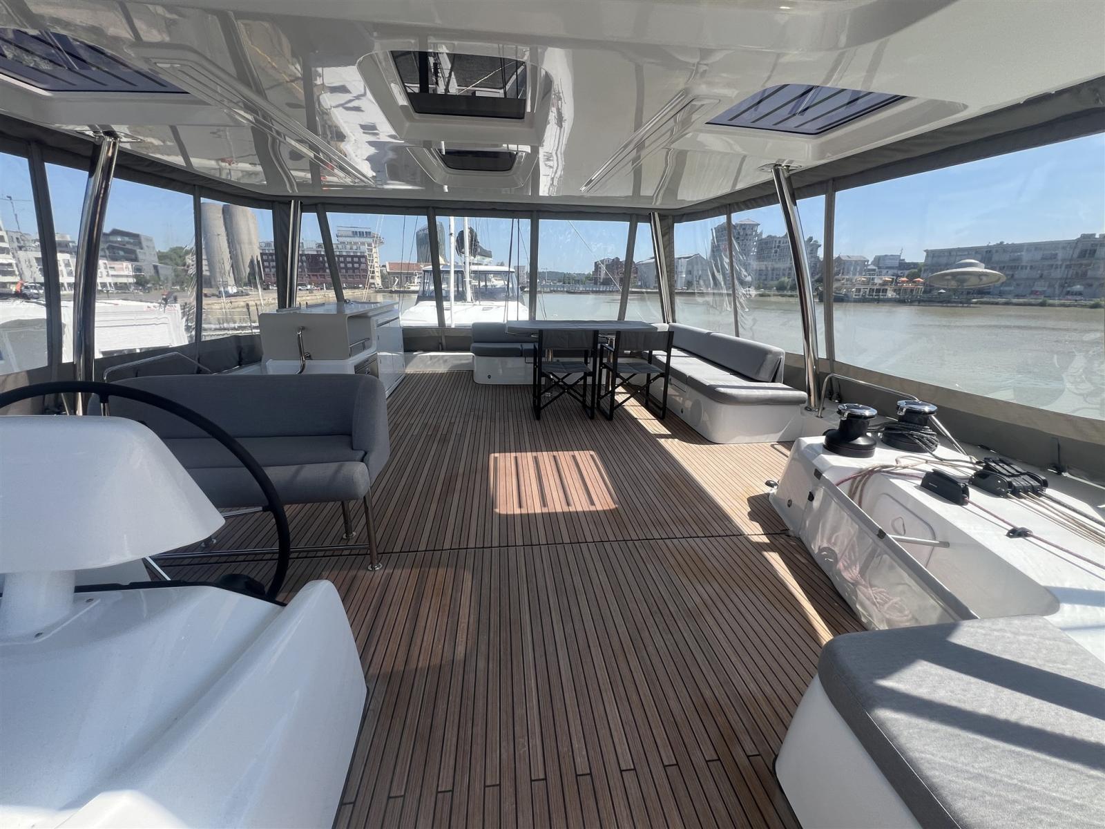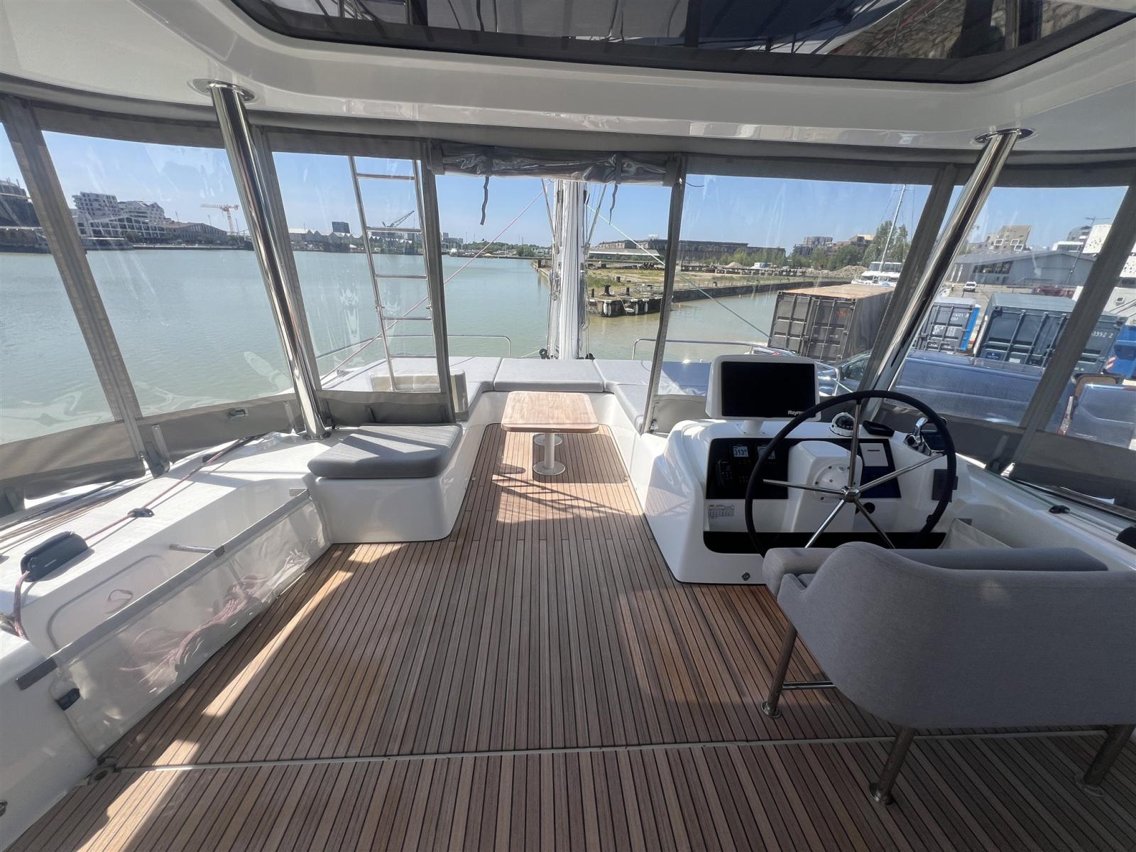 Alarme moteur, Alarme de pompe de cale, Eau sous pression, Passavant en teck, Douche de cockpit, Phares fixes arrière, Lavabo dans le cockpit, Éclairage de courtoisie, Spots sous-marins, Pompe de cale automatique, Pompe de cale manuelle, Cockpit en teck, Prise de quai, Connexion eau sous pression à quai, Guindeau électrique, Gréement monotoron, Echelle de bain, table de cockpit, Annexe, Winch électrique avant.
