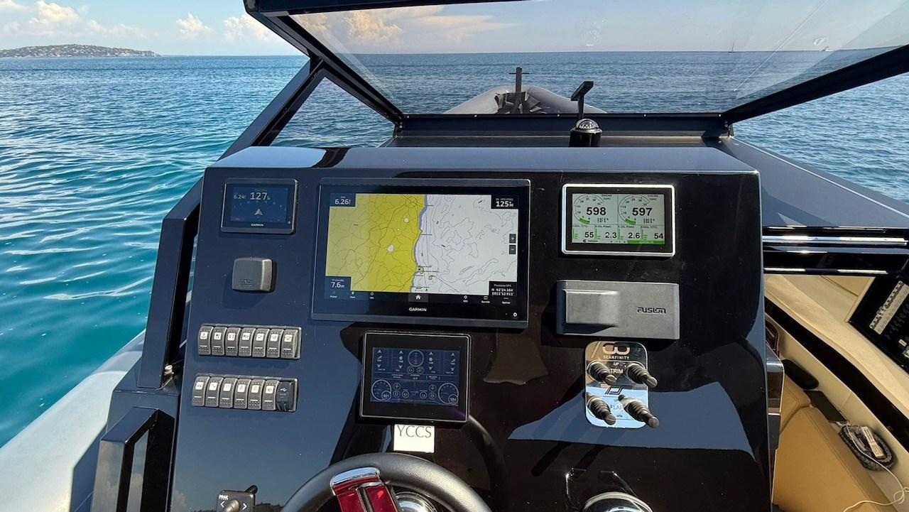 GPS Garmin/plotteur - Sondeur d’écho Garmin - Pilote automatique Garmin - VHF Garmin - tableau de contrôle moteur numérique - panneau de contrôle de la transmission de surface numérique - compteur de chaîne.