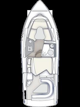 Alarme moteur, Eau sous pression, Douche de cockpit, Lavabo dans le cockpit, Éclairage de courtoisie, Plateforme arrière, Porte latérale, Prise de quai, Guindeau électrique, Echelle de bain, table de cockpit, Table pliante de salon.