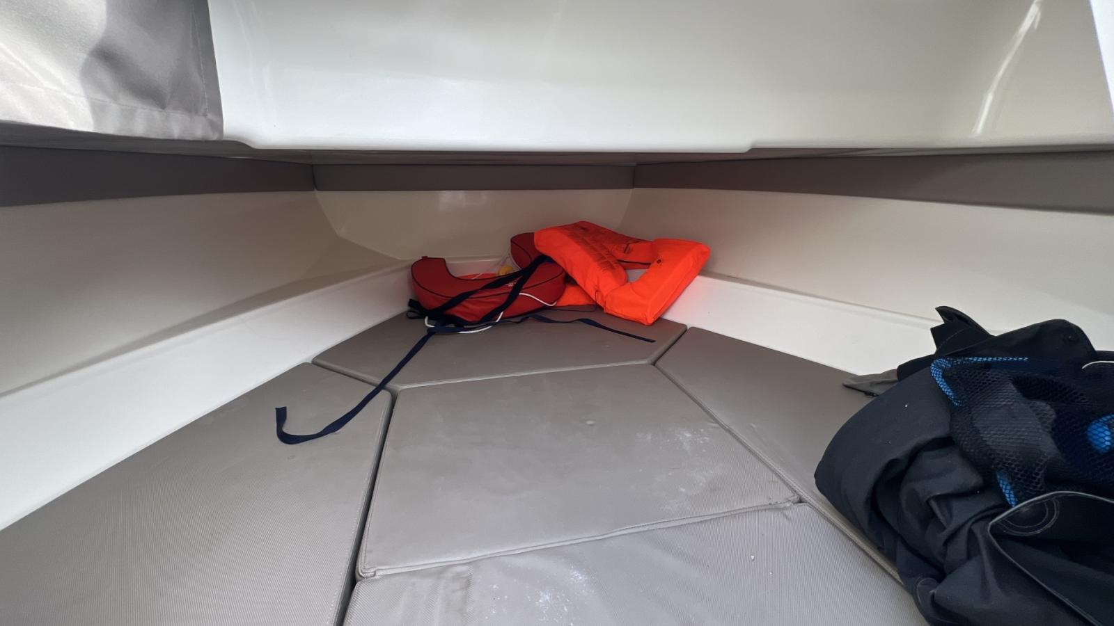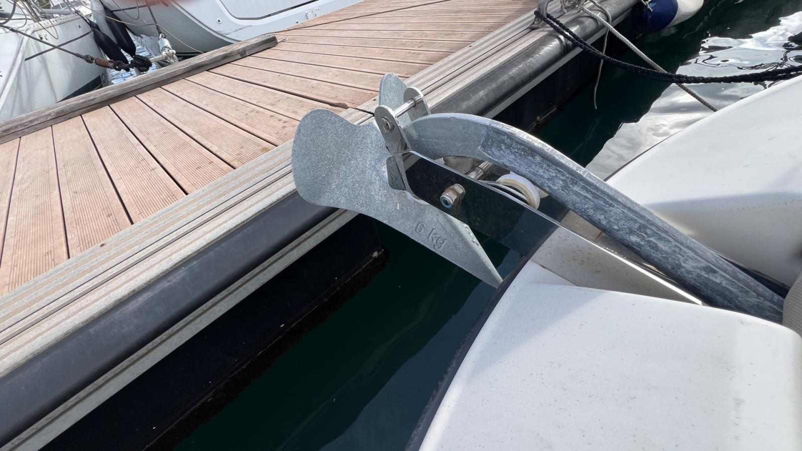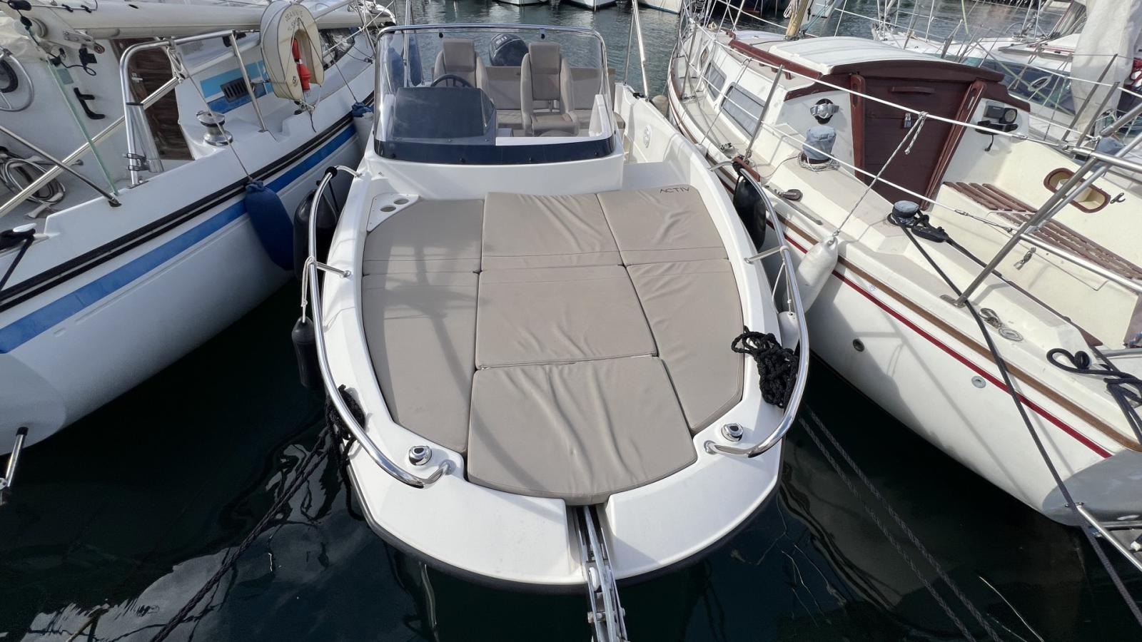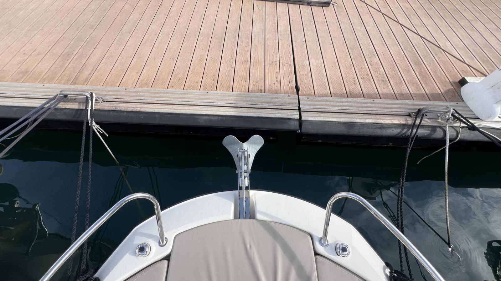 Bain de soleil avant, Coussins de Cockpit, Bimini + Housse, Sièges cockpit, Cabine avant avec couchette double, WC chimique, Mat de ski / Bouée tractée.
