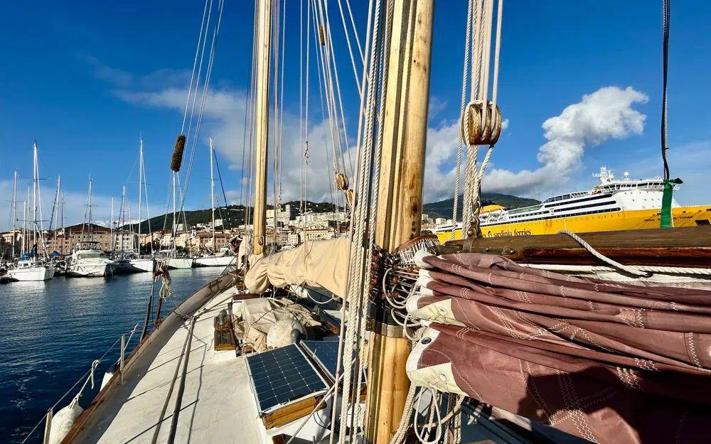 Ce voilier ne se limite pas à une esthétique remarquable. Il s’agit d’une unité navigante reconnue, engagée en régate classique, notamment lors de la Corsica Classic où elle s’est illustrée avec une première place en catégorie aurique lors d’une précédente édition et une seconde place en 2025. Capable d’atteindre 10 nœuds au portant, elle démontre des performances solides face à des unités plus contemporaines, tout en conservant une navigation à barre franche en métal fidèle aux traditions. Régulièrement mise en lumière par les médias régionaux comme France 3 Corse Via Stella ou Corse Matin, elle bénéficie d’une notoriété locale qui renforce sa valeur et sa crédibilité.