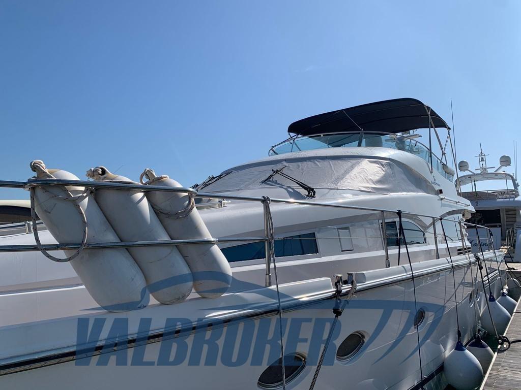 Eau sous pression, Passavant en teck, Chargeur de batterie (Mastervolt), 3 Propulseur d'étrave (sidepower, terza stazione comando in pozzetto), Phare de poursuite, Grue de flybridge (Besenzoni), Passerelle (TEAK, idraulica), Plateforme arrière (teak), Cockpit en teck (2022), table de cockpit (teak).