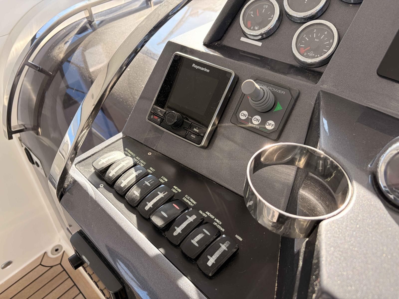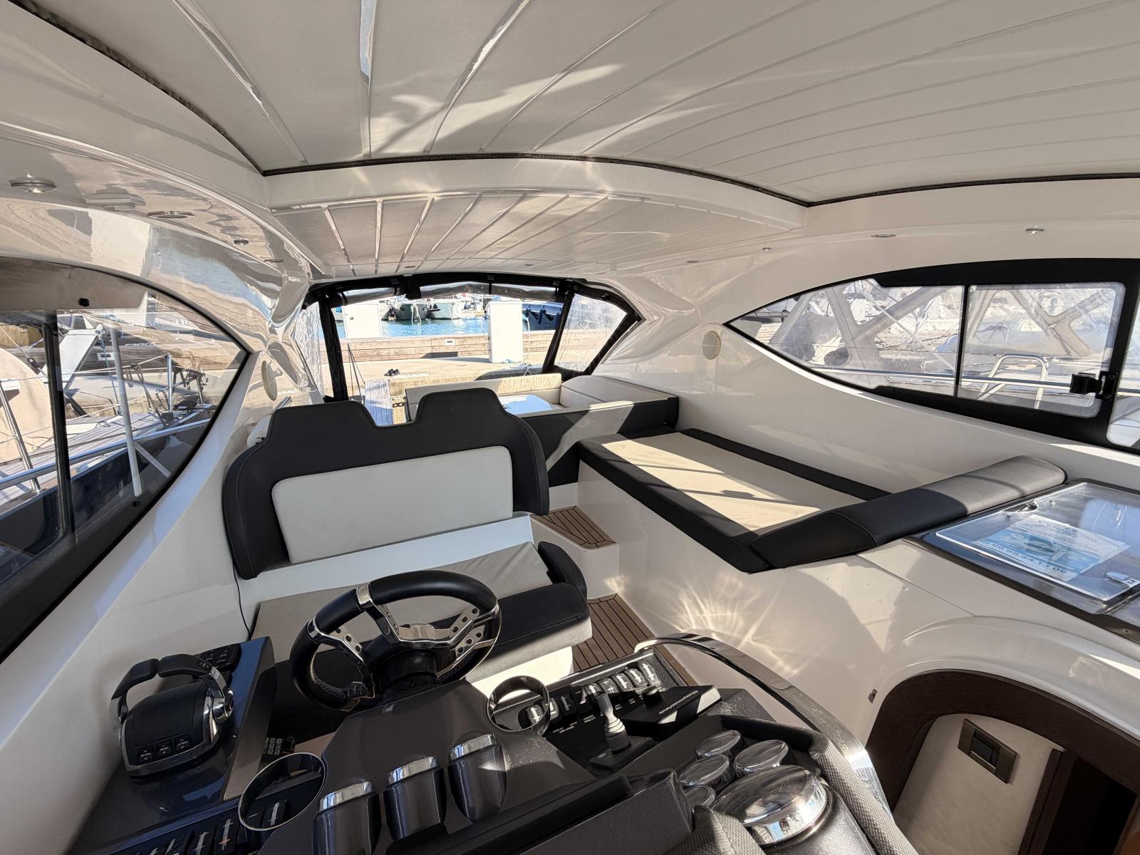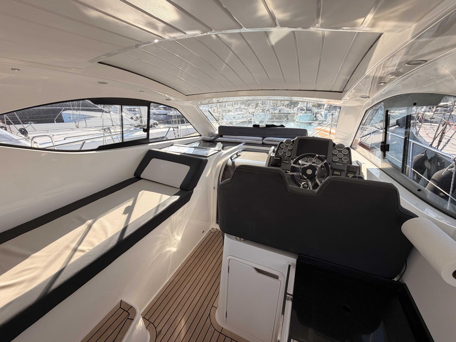 Ce modèle-ci se distingue par son état général et le soin qui lui a été apporté, offrant un bateau prêt à naviguer, confortable et particulièrement agréable à vivre au quotidien. Propulsé par deux moteurs Volvo Penta D4 300 totalisant seulement 423 heures, il offre des performances équilibrées, avec une vitesse maximale d’environ 35 nœuds.