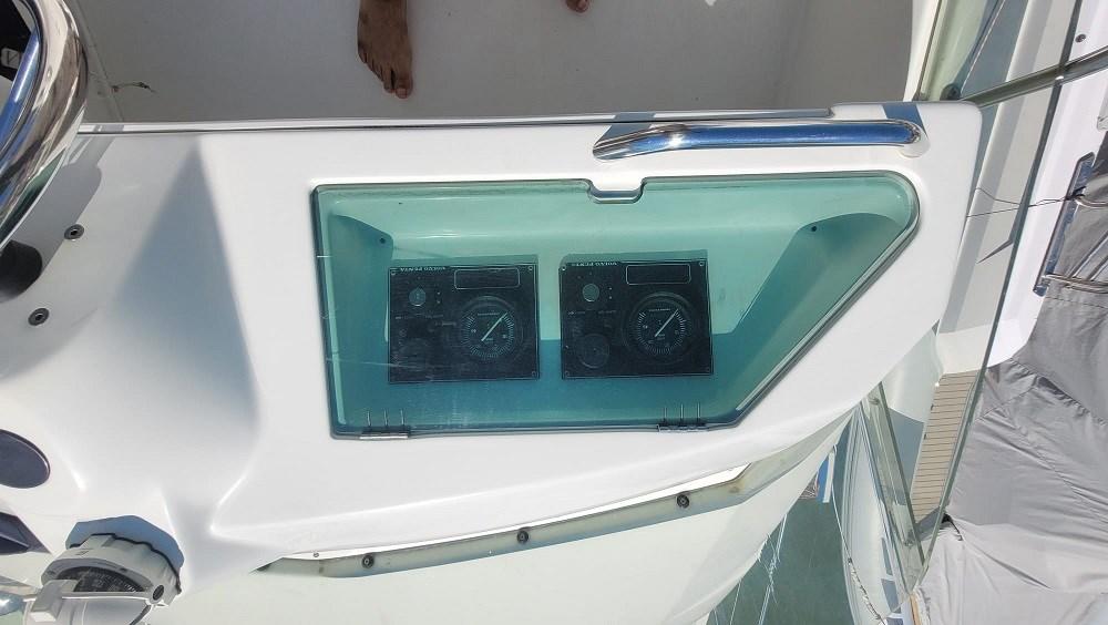 Indicateur d'angle de barre, Commande électrique (Manette elettroniche), Moniteur, 2 GPS, 2 Lecteur de cartes, Siège copilote.