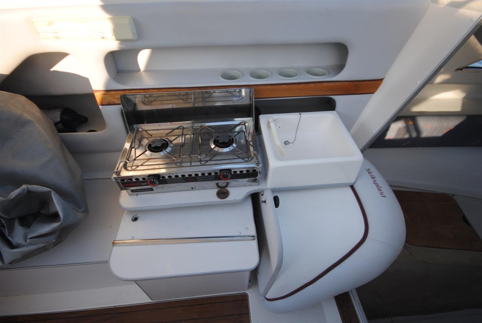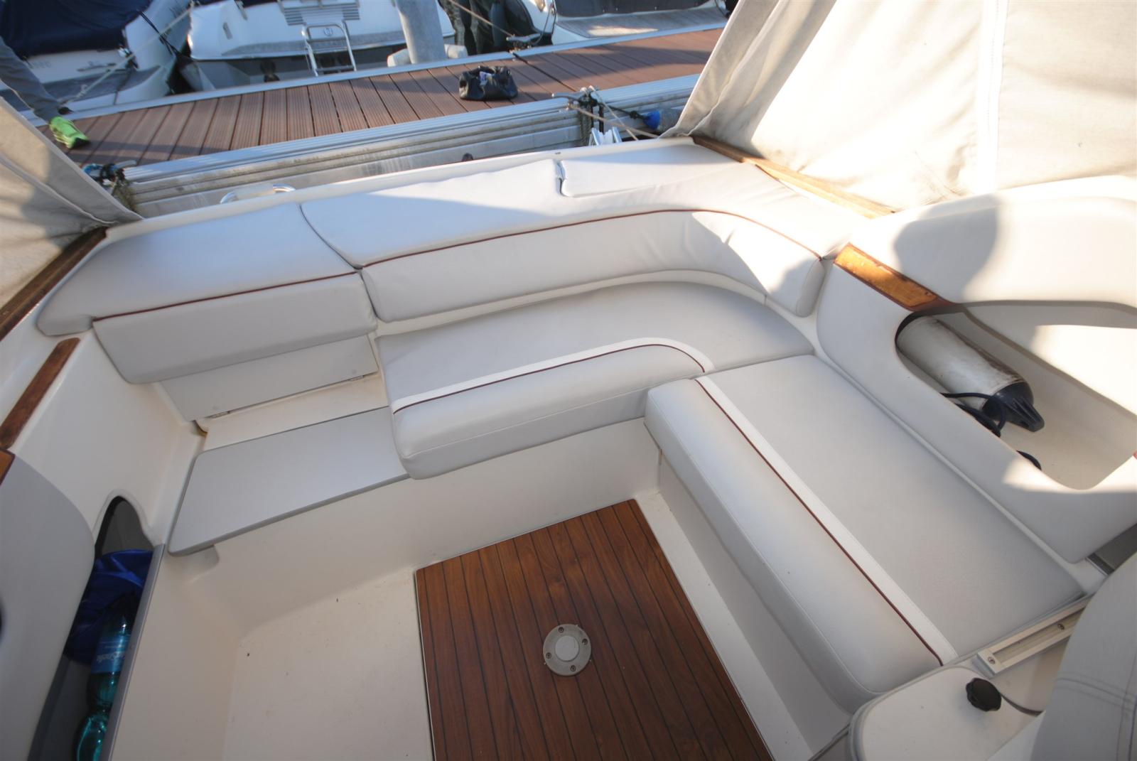 Cockpit confortable et couchette intérieure. Idéal pour la pêche ou les excursions d’une journée. TRAILERABLE