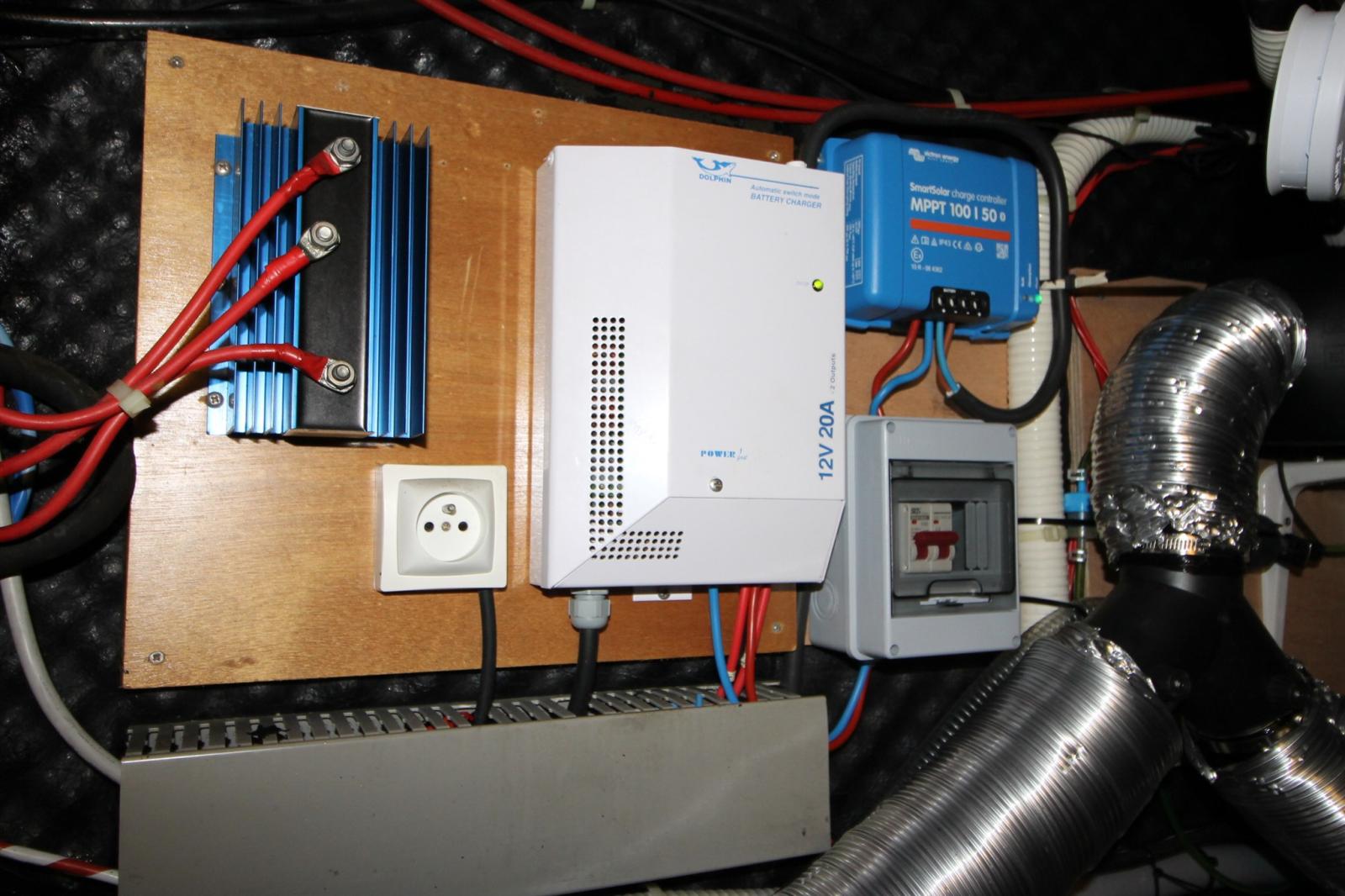 Eau Chaude, Ballon d'eau chaude, Cuve à eaux noires, Convertisseur (600w), 6 Prises interieures 12v, Chauffage (gasoil Vevor 5kW), Voltmètre, Toilettes électriques, Toilettes manuelles.