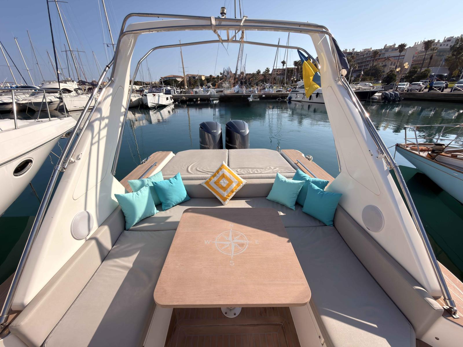 Son plan de pont spacieux permet d’accueillir confortablement jusqu’à 12 personnes. Les bains de soleil, le cockpit convivial et les espaces bien pensés en font un bateau idéal pour des sorties à la journée, en usage privé comme en location.