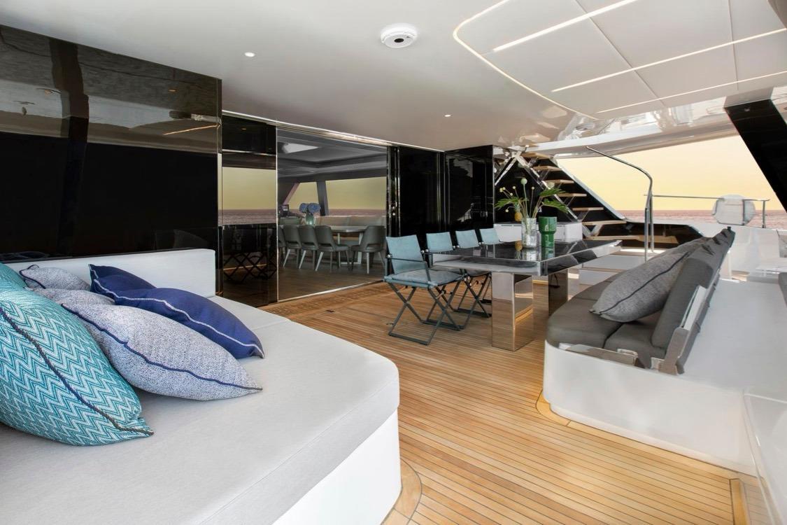 - Salon central audio system – media center + subwoofer + flybridge 55” TV + Dolby Atmos