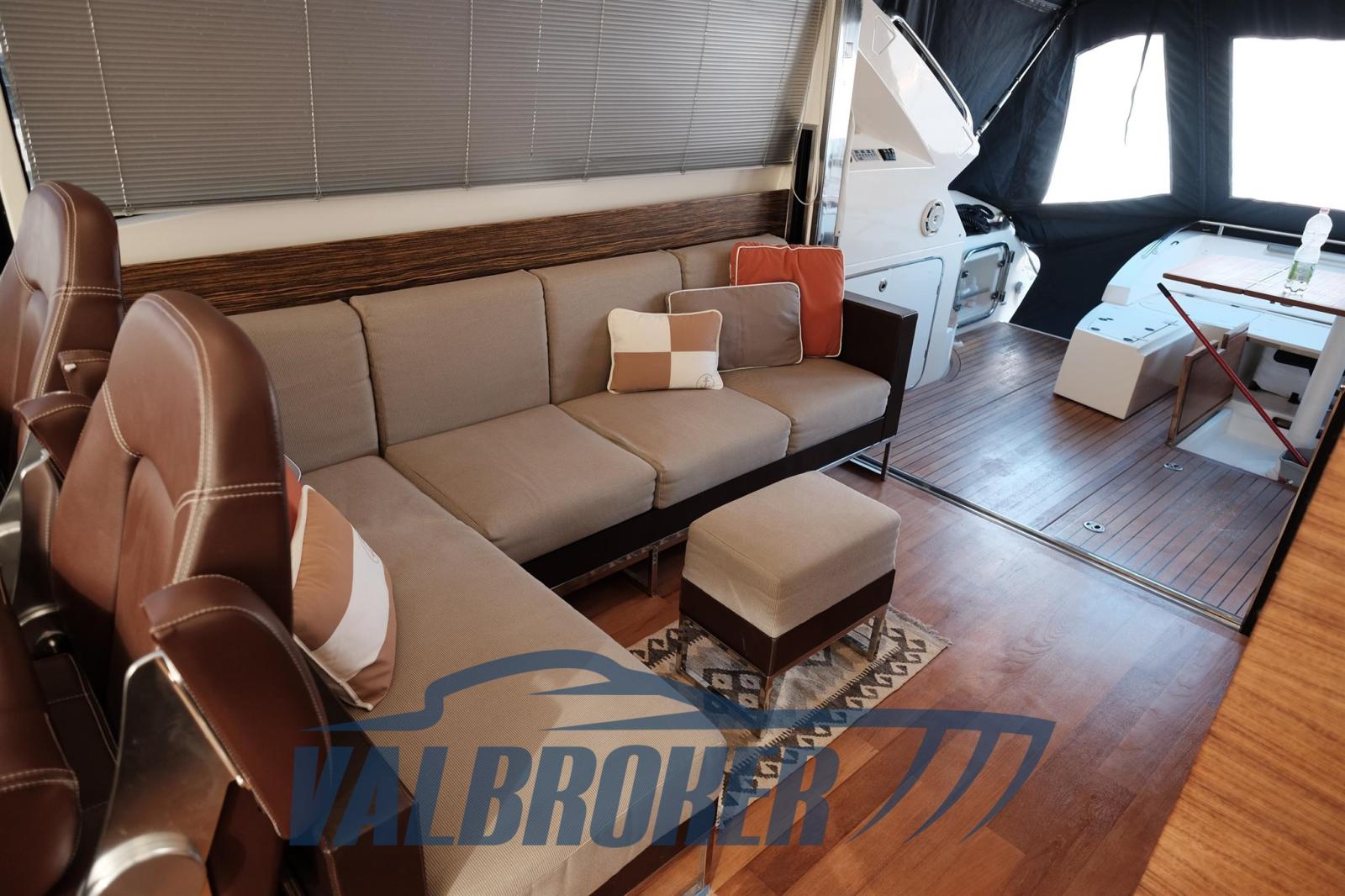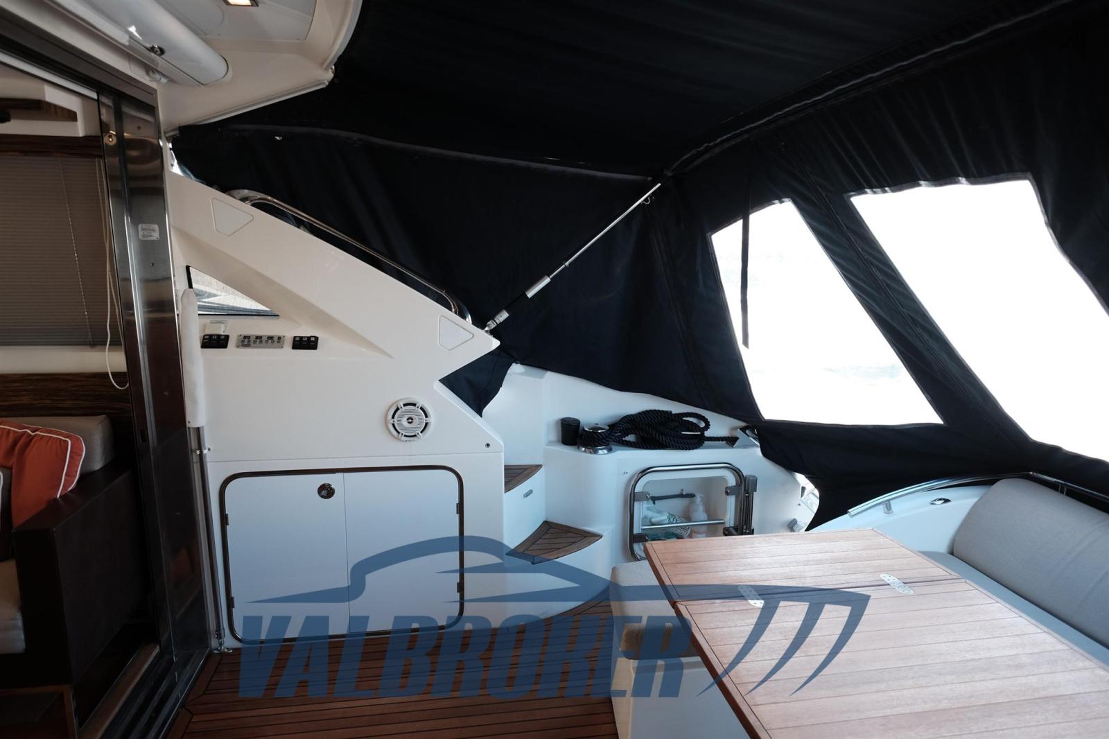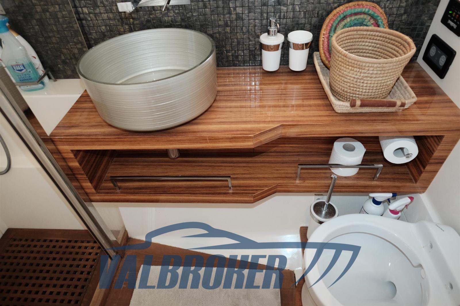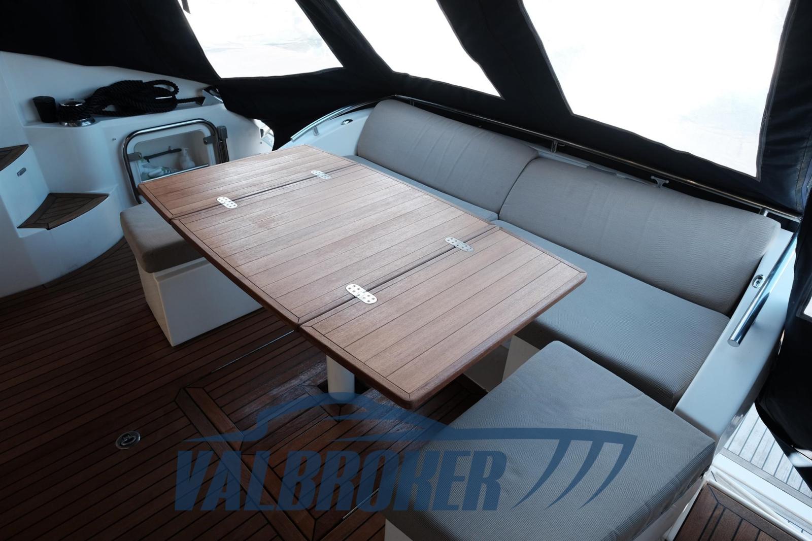 Hardtop avec porte et toit ouvrant. Première immatriculation et utilisation en 2014. L’un des premiers modèles à proposer trois cabines doubles et trois salles de bains. Extrêmement polyvalent avec de grands espaces intérieurs. 2 moteurs Volvo Penta IPS 600. Il a actuellement environ 500 heures de moteur. a été entièrement réaménagé entre 2023 et 2024. Les moteurs ont été mis en place en 2023, portés à zéro heures et remplacés par le programme officiel Volvo. Travaux réalisés en 2024 : remise à niveau IPS par l’atelier autorisé Volvo, nouveau traceur de cartes Raymarine avec radar, nettoyage du réservoir diesel, nouveau chargeur de batterie, nouvelles batteries de service, refonte du siège du pilote, nouveau teck du cockpit. Rina est valable jusqu’en 2028.