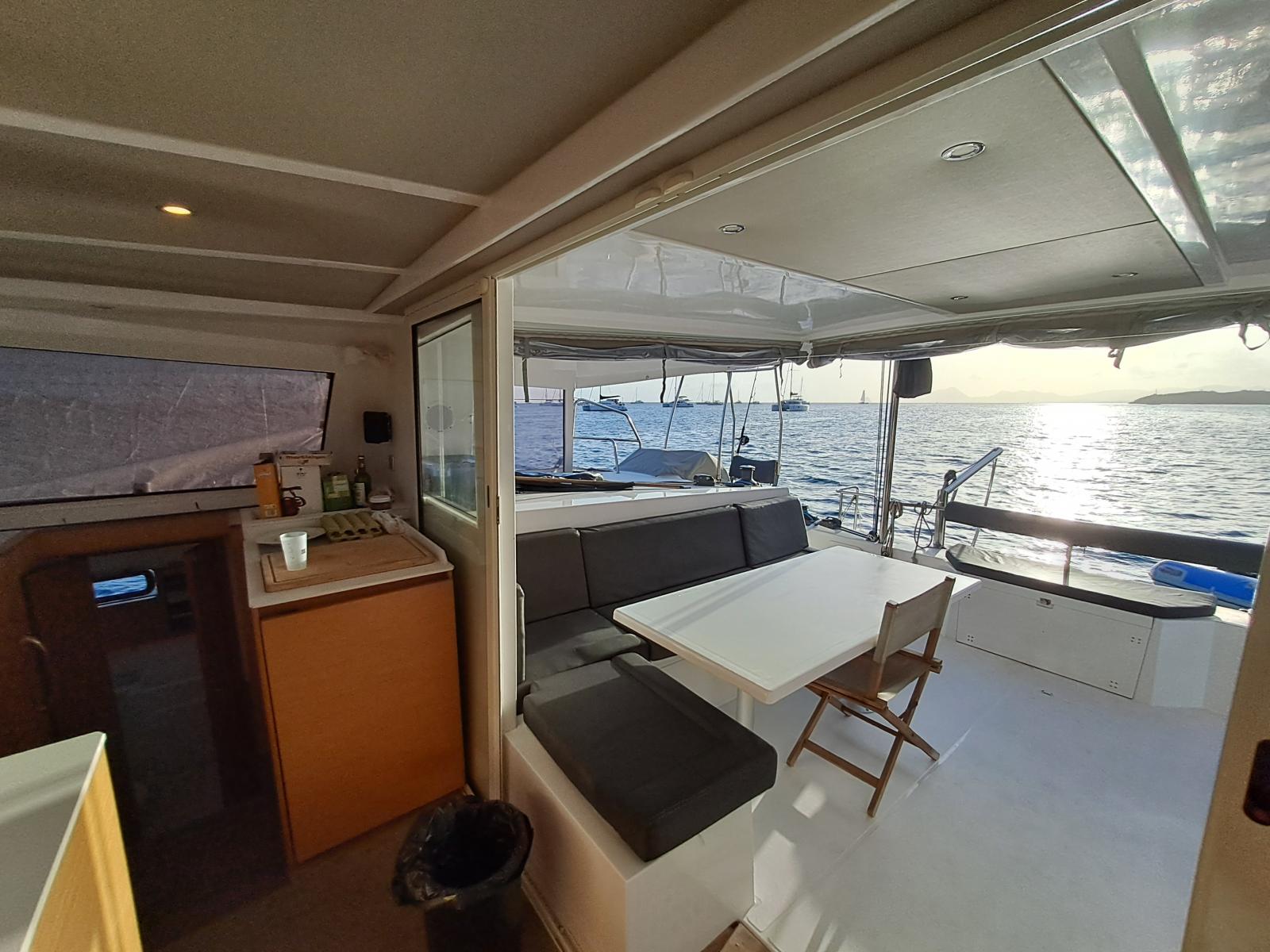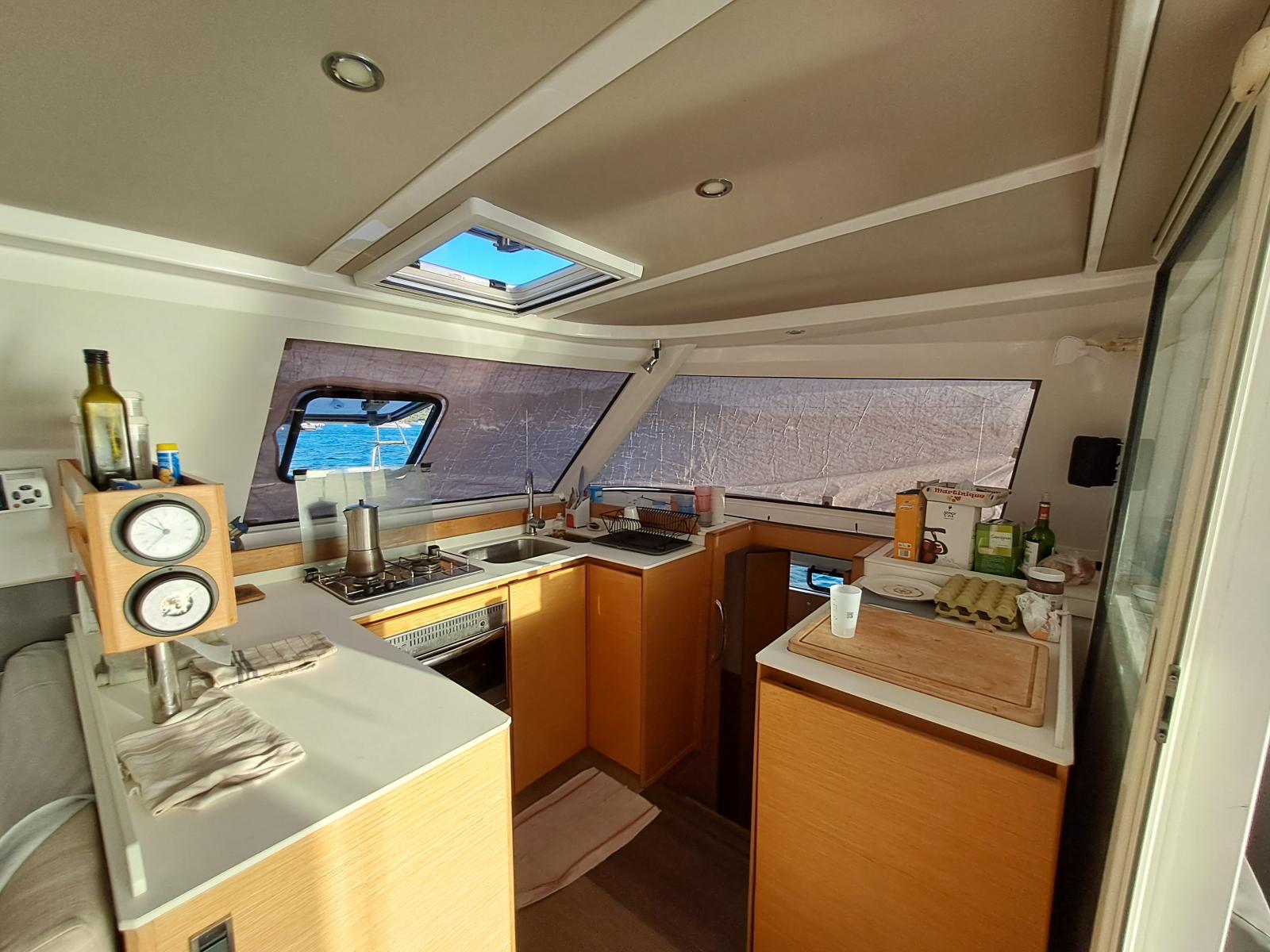 Si le modèle est reconnu pour son concept open (un espace commun, ouvert et de plain pied entre cockpit et carré), ses performances (caractérisées par le meilleur rapport poids / surface de voile de sa catégorie) et son agrément (grosse capacité de chargement et de rangement, confort et agrément des cabines), Ce bateau est en plus dans un excellent état et idéalement équipé (panneaux solaires, annexe + moteur 15cv et bossoirs très pratiques, dessalinisateur, ...) pour assurer un confort optimum sans charger outrageusement le bateau et ainsi lui permettant de garder ses qualités véliques.
