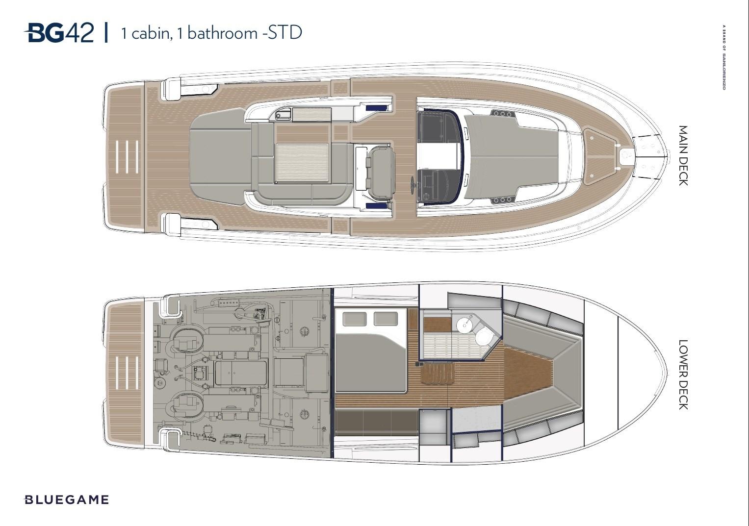 Pas une promenade, pas un open, pas un day-cruiser ou un chase-boat. Le Bluegame 42 est tout cela à la fois. Il n’est plus nécessaire de faire des compromis entre puissance et confort maximal à bord. Un design avant-gardiste pour un bateau à moteur élégant qui offre des sensations uniques en mer. Le BG 42 est équipé d’un grand cockpit, d’un walk-around protégé par des bords hauts pour des opérations en toute sécurité en pleine mer et une large visibilité lors des manœuvres, grâce au poste de commande central et à la vitre arrière. Grâce à une optimisation intelligente de la lumière et de l’espace, l’habitabilité du pont inférieur est supérieure à celle d’un bateau de même longueur. La cabine principale dispose d’un lit double king-size et la salle à manger à l’avant peut être convertie en lit double pour accueillir jusqu’à six personnes. Ce BG 42 est dans un état comme neuf. A voir absolument. Contactez-nous pour tous les détails.