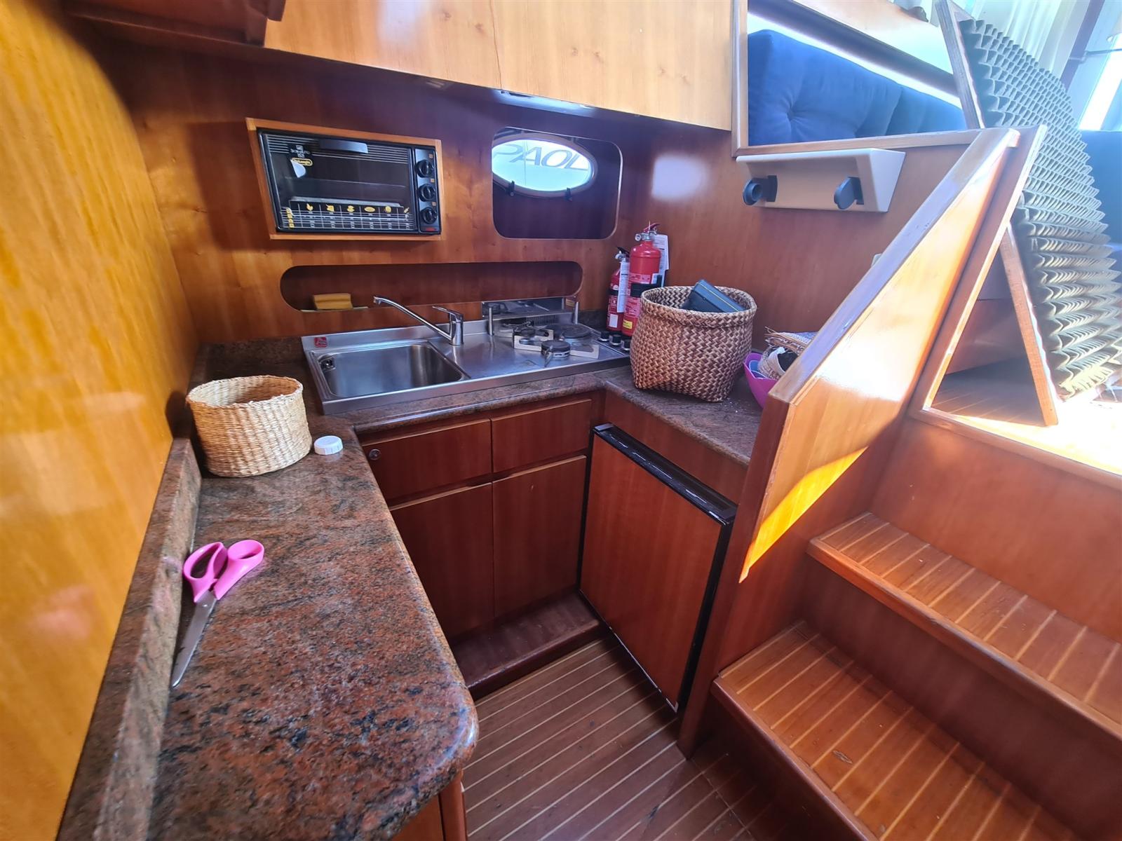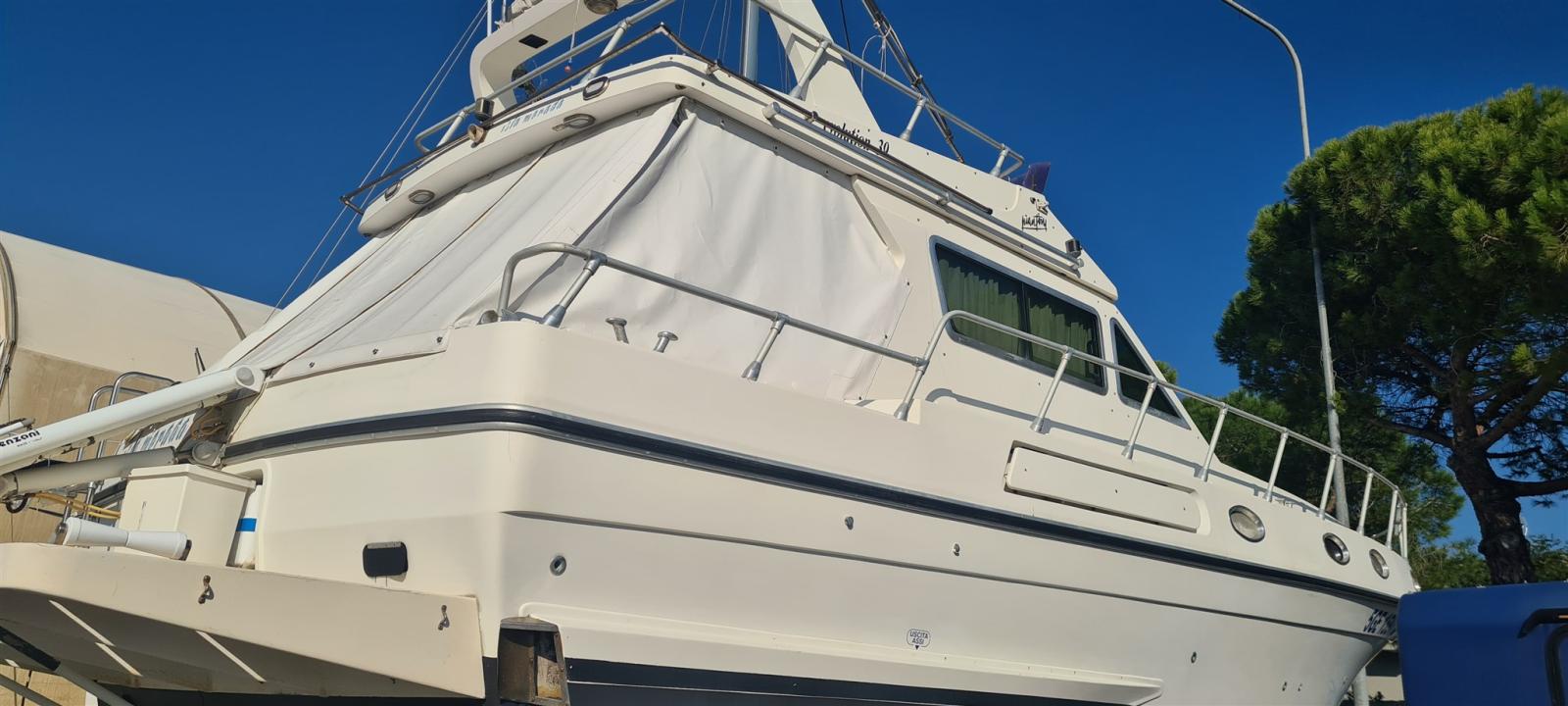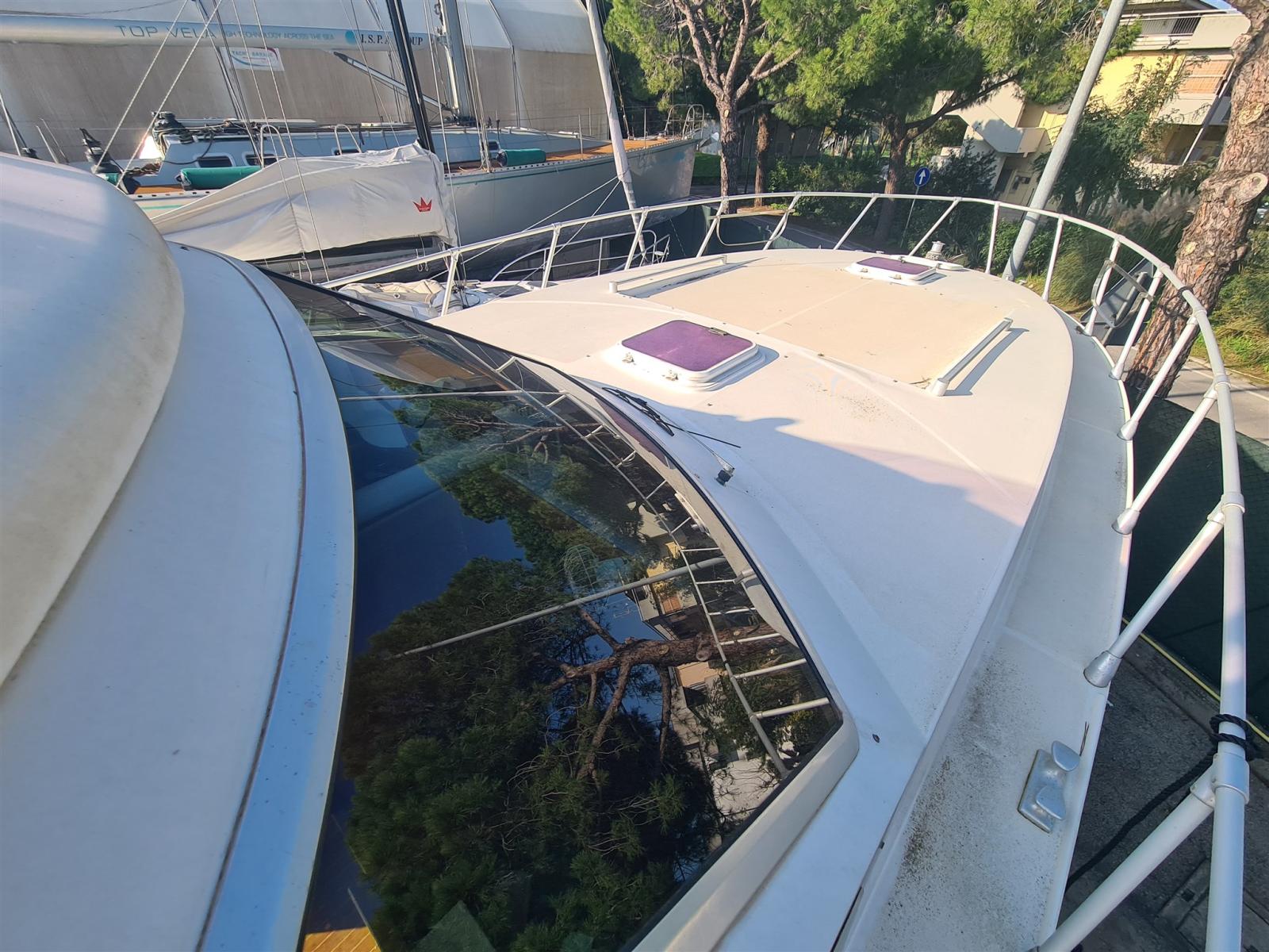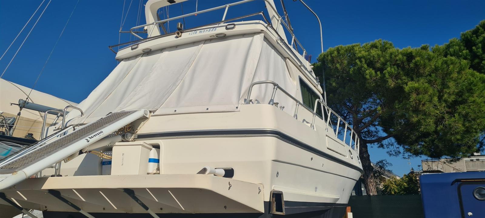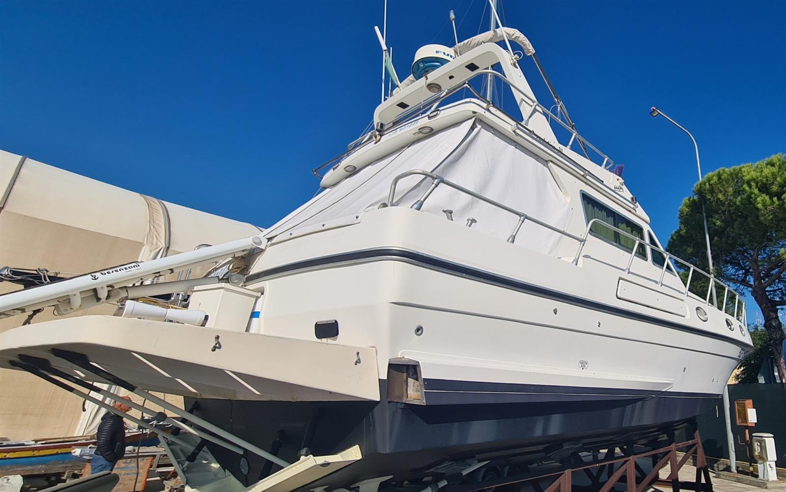 Alarme moteur, Eau sous pression, Batteries (nuove 2022), Douche de cockpit, Phare de poursuite, Flaps hydrauliques, Grue électrique, Indicateurs de flaps, Éclairage de courtoisie, Passerelle (idraulica Besenzoni), Plateforme arrière, Pompe de cale automatique, Porte latérale, Prise de quai, Connexion eau sous pression à quai, Onduleur, Rollbar, Guindeau électrique, Echelle de bain, Annexe (Arimar + mercury 2,5cv), Corne.