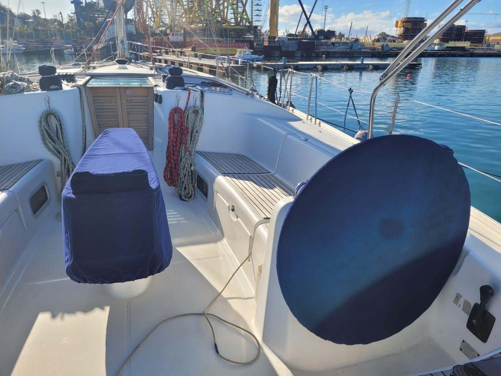 Il offre une capacité d’eau considérable (1000 L) et de carburant (500 L) ; avec un moteur Yanmar de 110 ch, débarqué et entièrement révisé en 2024, et une surface de voile de plus de 110 mètres carrés. avec des voiles blanches avec la possibilité de hisser un gennaker de 127 mètres carrés sur le beauprés en acier inoxydable.