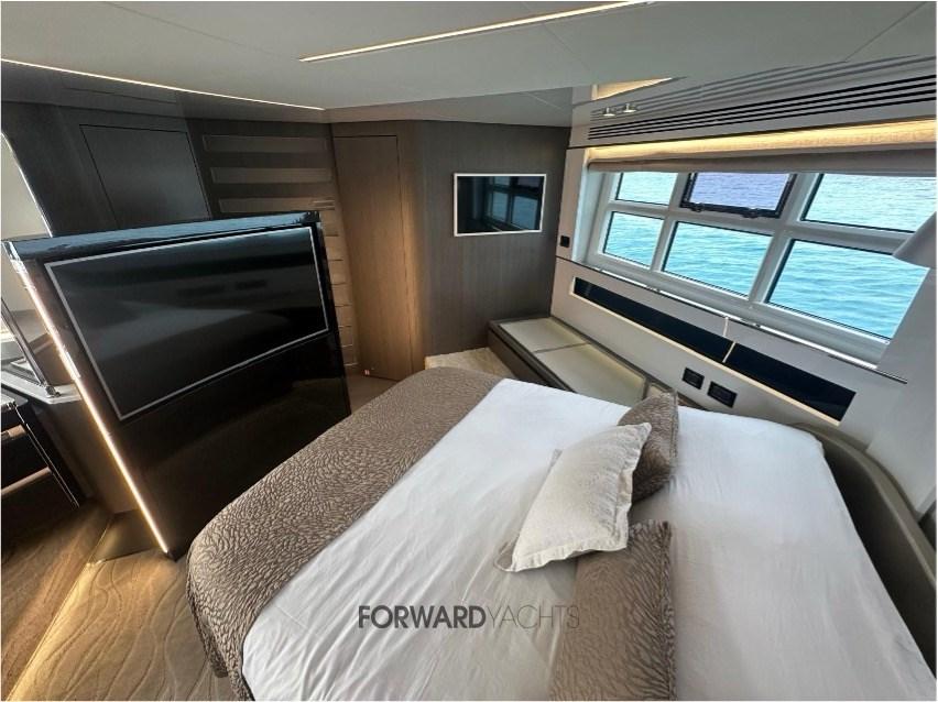 Seakeeper NG16 - 2 générateurs (Kohler 19 kVA et Mase 6,5 kVA) - watermaker HP 360 l/h - propulseur avant - plateforme de bain hydraulique - maître de câble Glendening - feux sous-marins (4) - électronique complète Raymarine (4 x 16") - AIS - radar Raymarine - pilote automatique - VHF - sondeur de profondeur - troisième station de manœuvre avec joystick dans le cockpit - teck dans cockpit, ponts latéraux et flotte - passerelle hydraulique Opacmare - toit rigide avec toit ouvrant - proue bimini hydraulique - mouche bimini hydraulique - auvent Cockpit électrique - chaîne d’ancre de 100 m + ancre Ultra Marine 45 kg - treuil de cockpit - Starlink - système Bose Hi-Fi - salon TV avec système hi-low - TV dans 3 cabines + cabine d’équipage - Audio Fusion cockpit - 4 cabines + cabine d’équipage - 3 salles de bain - climatisation réversible - salon en cuir - plancher en bois dans le salon - coffre - machine à laver - sèche-linge - lave-vaisselle - four + micro-ondes - 4 réfrigérateurs - 1 congélateur - cave à vin.