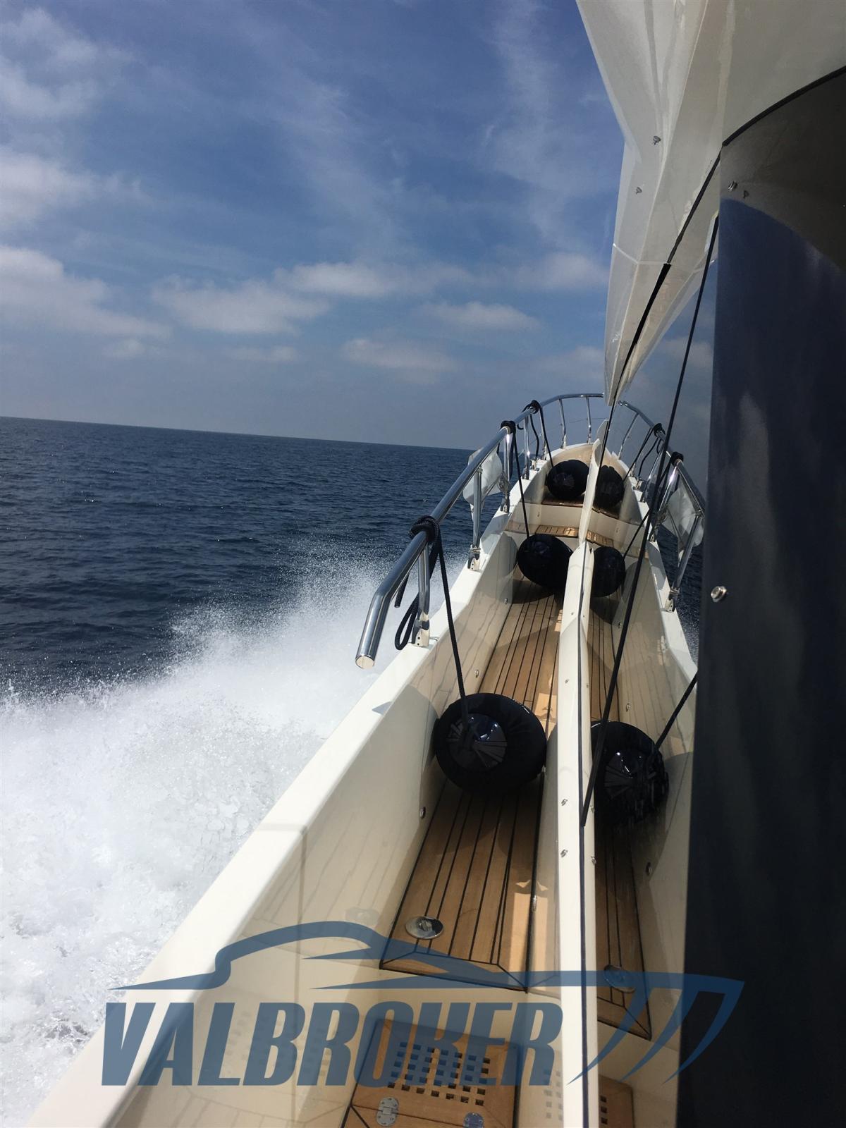 Ancre (inox 45kg), Eau sous pression, Douche de cockpit, Propulseur d'étrave (side power), Phare de poursuite (con comando a distanza), Flaps hydrauliques, Hard top (soft top in vetroresina), Indicateurs de flaps, Éclairage de courtoisie, Spots sous-marins, Panneau solaire (con Victron), Passerelle (elettroidraulica a scomparsa), Plateforme arrière (idraulica, teak), Porte latérale, Cockpit en teck, Prise de quai, Connexion eau sous pression à quai, Guindeau électrique, Echelle de bain, Stabilisateurs (Seakeeper 9 2019), table de cockpit, Winch électrique arrière.