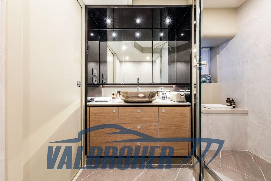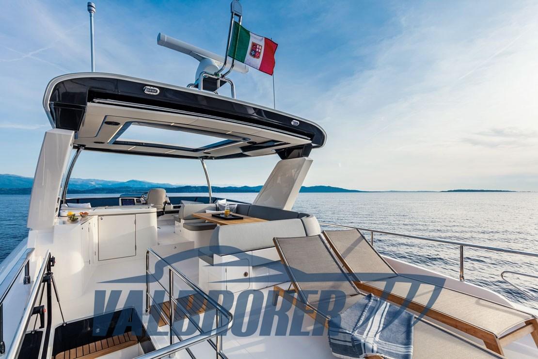 Ancre (45kg inox), Auto Dynamic Trim Interceptor (Volvo), Eau sous pression, Passavant en teck (massello), Chargeur de batterie (con controllo remoto), Douche de cockpit, Propulseur d'étrave (terzo comando in pozzetto), Hard top (vetroresina), Éclairage de courtoisie, Spots sous-marins (bianche), Panneau solaire, Passerelle (elettro-idraulica teak), Plateforme arrière (idraulica 400kg con scaletta integrata), Pompe de Lavage du Pont, Porte latérale, Cockpit en teck (massello), Guindeau électrique, Echelle de bain (con maniglia rimovibile), table de cockpit (Regolabile in altezza con piano in laminato effetto pietra, gamba in alluminio, alette pieghevoli, non smontabile, con posizione regolabile e copertura), Filières avec sortie latèrale.