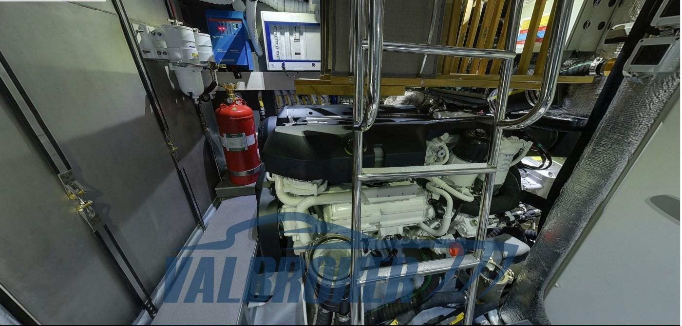 troisième station d’amarrage dans le cockpit, gonfleur/déflateur intégré situé à l’entrée de la cabine d’équipage/compartiment de rangement arrière, rampe latérale Flybridge avec finition en fibre de verre blanche, passerelle en teck massif, télécommande Garmin, Volvo assisté, amarrage, chargeur de téléphone, kit anticorrosion Volvo,