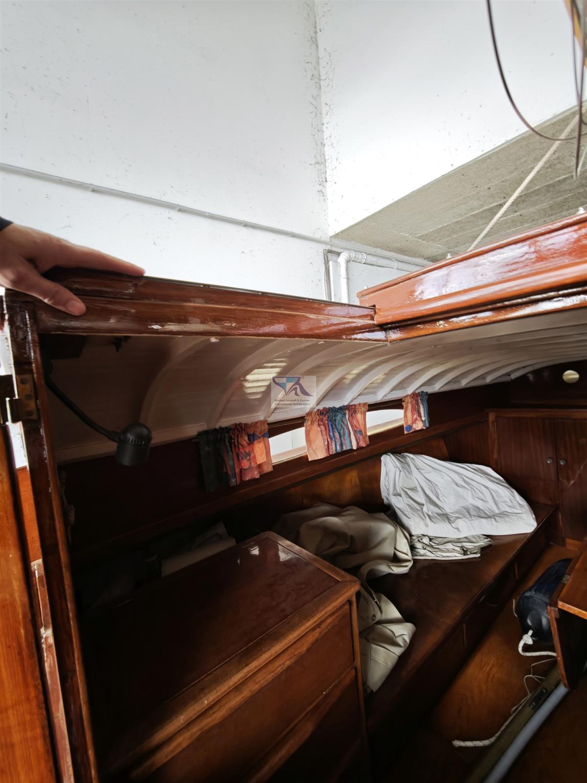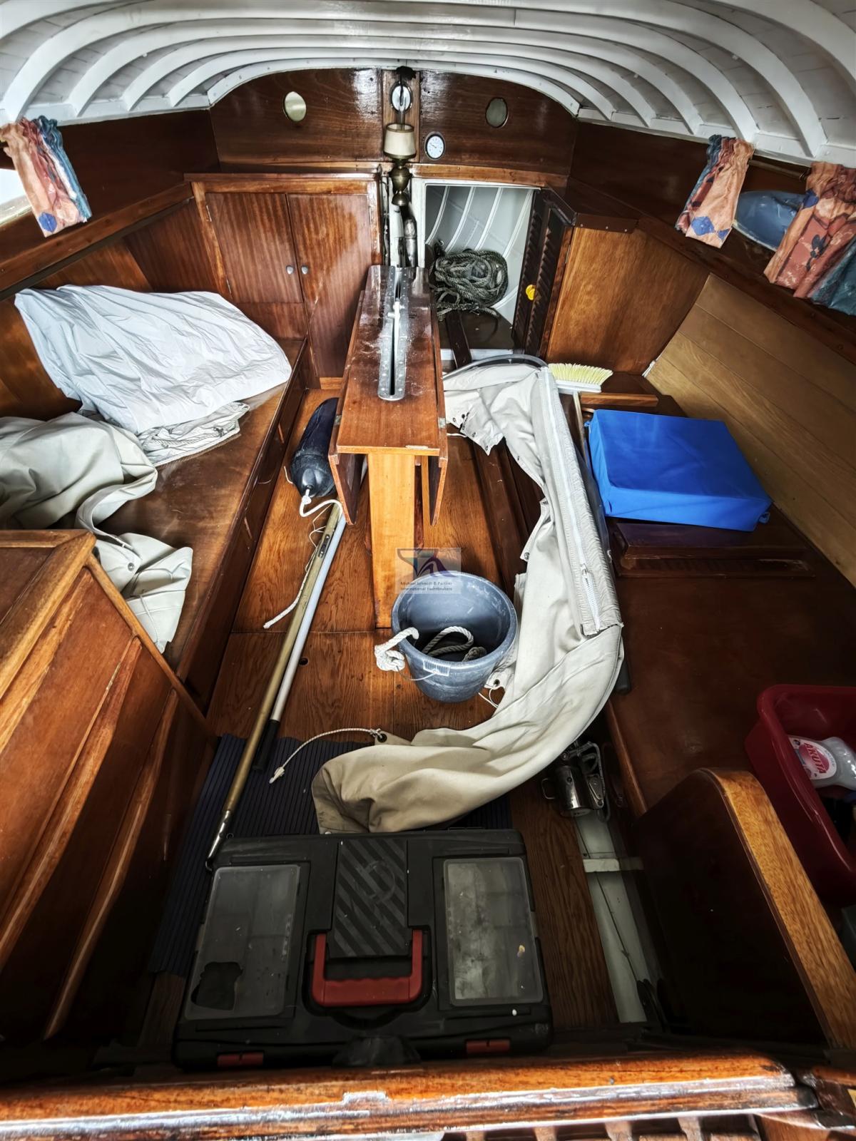 2 Ancre (1 x Klappanker, 1 x Draggen mit Kette), Système de vidange, Éclairage de courtoisie (Ankerlicht), Cockpit en teck, Prise de quai (12V), Echelle de bain, Chaise support HB, Corne, Pont en teck, Windex.