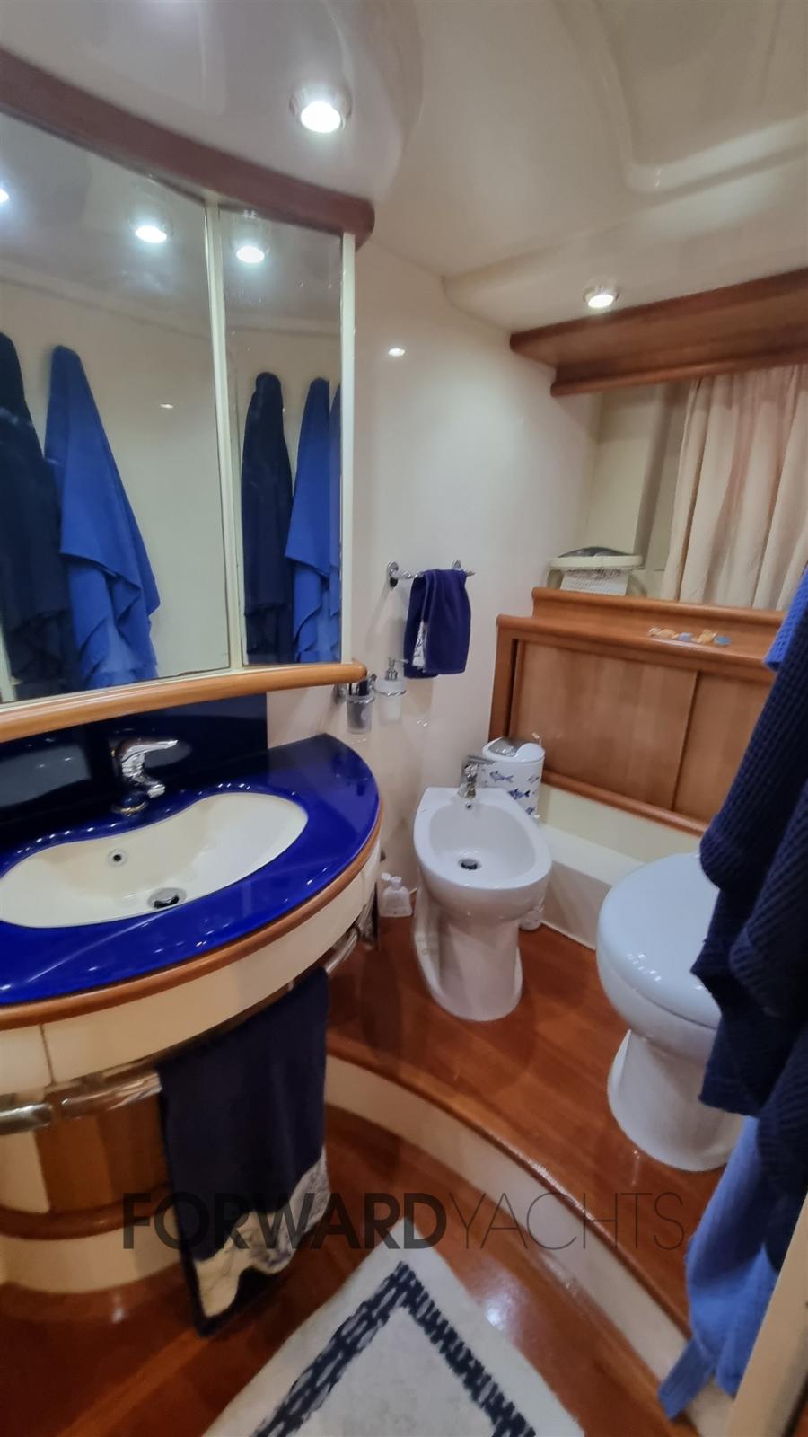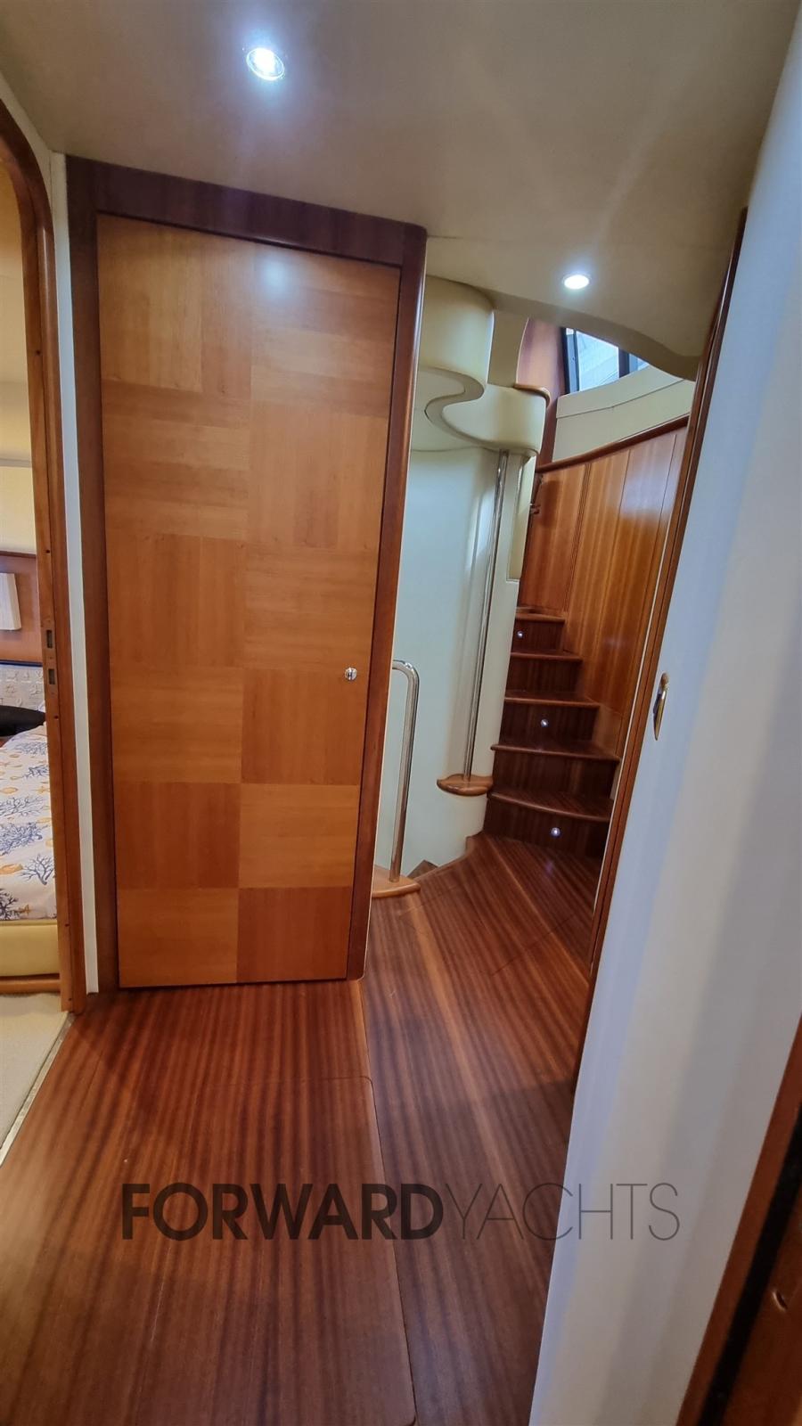 Eau sous pression, Douche de cockpit, Double barre à roue, Flaps hydrauliques, Grue de flybridge, Extincteur(s) fixe(s), Indicateurs de flaps, Éclairage de courtoisie, Passerelle (Idraulica), Plateforme arrière (Teak), Pompe de cale automatique, Porte latérale, Cockpit en teck, Prise de quai, Guindeau électrique, Echelle de bain, table de cockpit, 2 Winch électrique, Winch électrique arrière.
