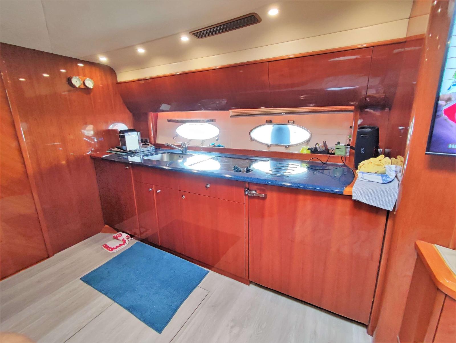 Côté intérieur, le carré est très grand, avec la cuisine sur tribord.