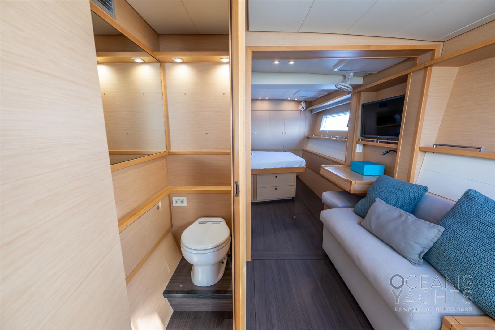 Eau Chaude, Ballon d'eau chaude, Air Conditionné, Dessalinisateur (200 LT/H), Cuve à eaux noires, Prises interieures 12v, Prises interieures 220v, Réservoir d'eau noire, Caméra vidéo, Toilettes électriques.