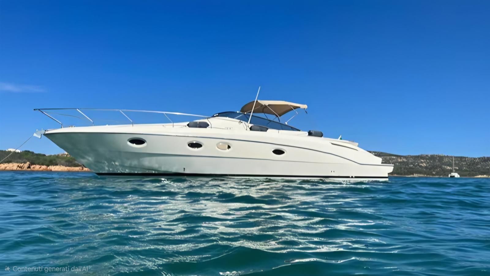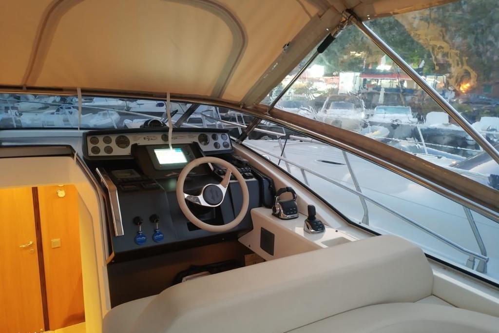 Alarme moteur, Alarme de pompe de cale, Alternateur, Eau sous pression, Câble d’alimentation à quai, Douche de cockpit, Flaps hydrauliques, Indicateurs de flaps, Lavabo dans le cockpit, Éclairage de courtoisie, Passerelle (IDRAULICA A SCOMPARSA), Plateforme arrière, Pompe de cale automatique, Pompe de cale manuelle, Cockpit en teck, Prise de quai, Guindeau électrique, Echelle de bain, Corne.