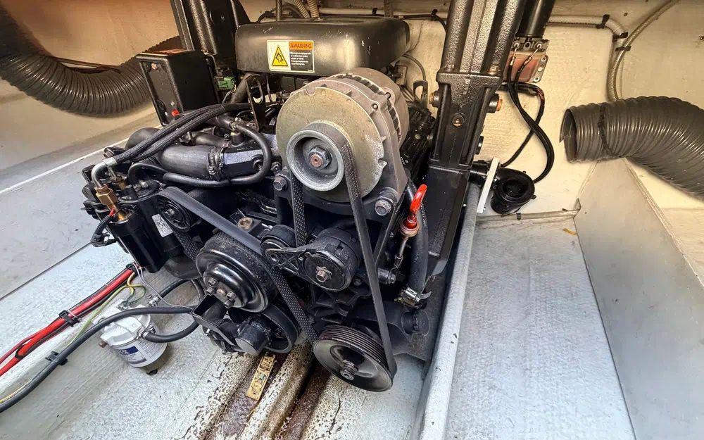Le bloc moteur a été remplacé en 2024, les coudes et collecteurs également. Le moteur n'a tourné qu'une vingtaine d'heures depuis ces interventions. L'horamètre au tableau de bord est HS cependant un important dossier de factures remontant sur plus de 15 ans est à disposition.
